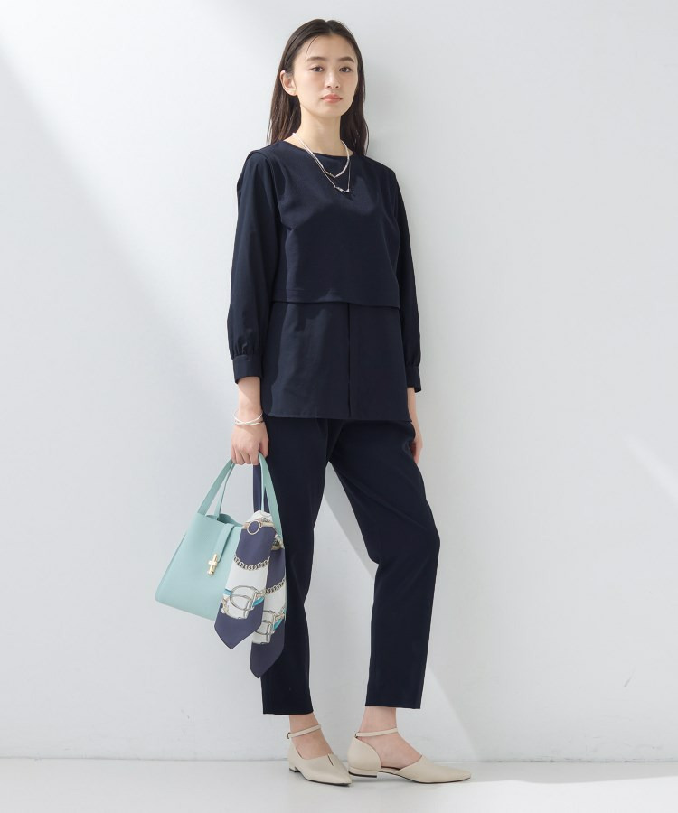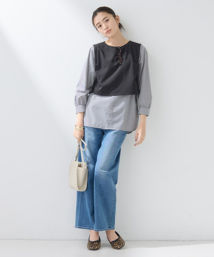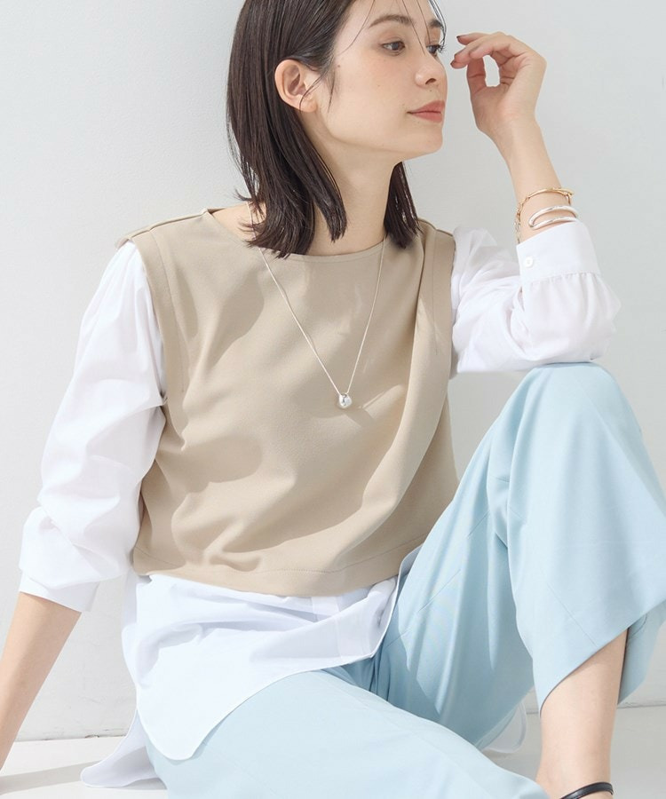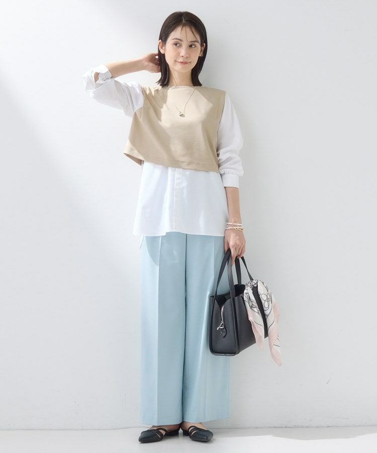 裾がシャツレイヤード風のデザインとなっているので、ワイドパンツやテーパードパンツなどと合わせていただくのがおすすめです。