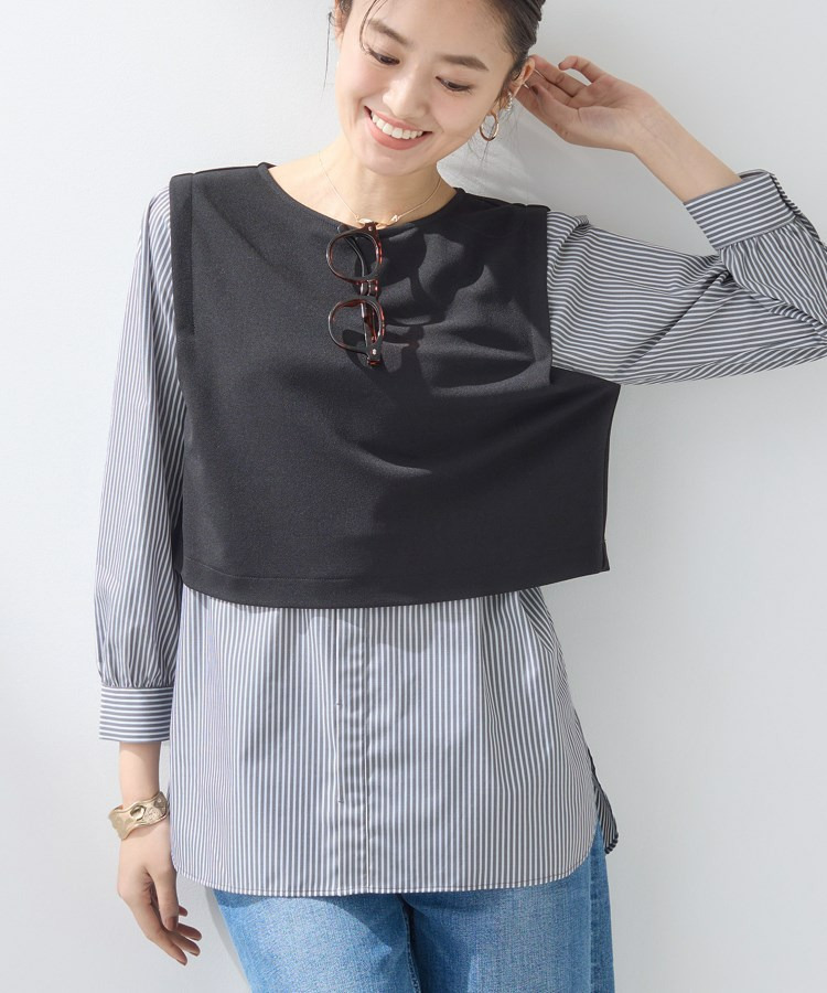 【洗える/UVケア】レイヤード風デザイントップス