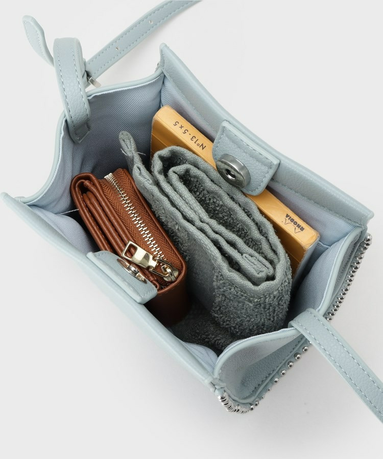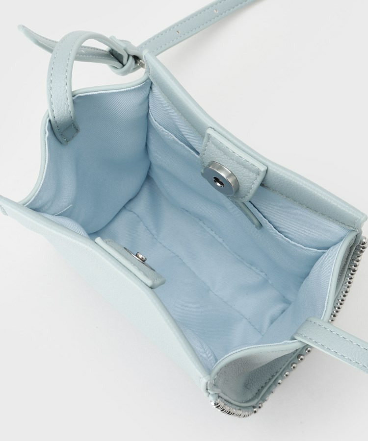スタッズアクセントのようなメタルがポイントのポシェットバッグです。