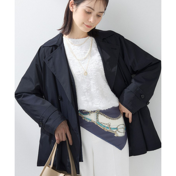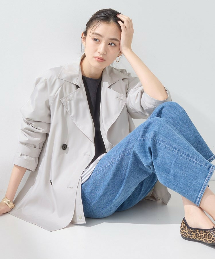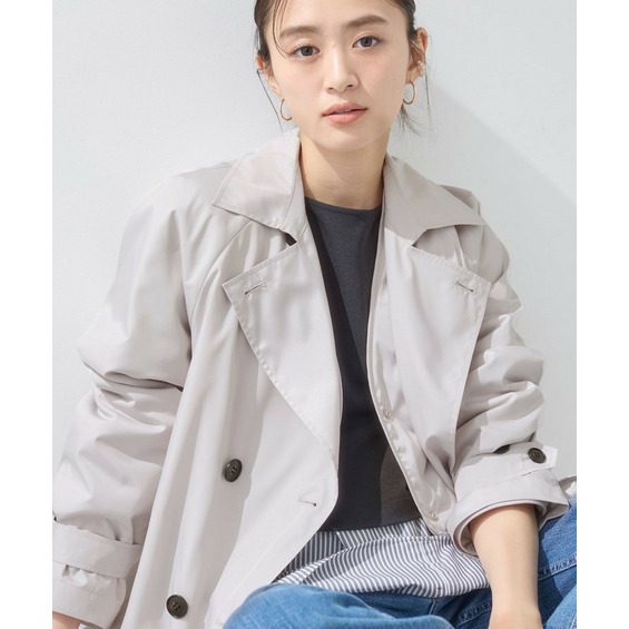 艶感のある超軽量素材でとにかくライトに仕上げたトレンチコートは、たっぷり着こめるゆとりを持たせたサイジングです。