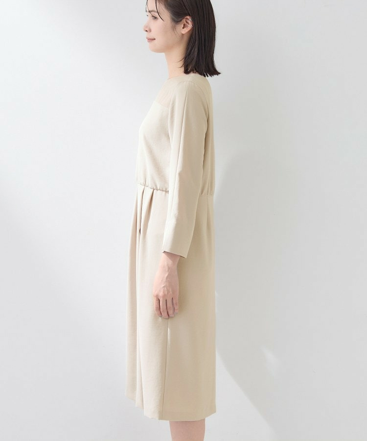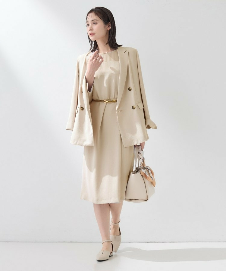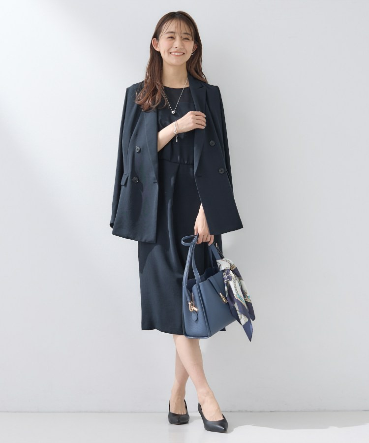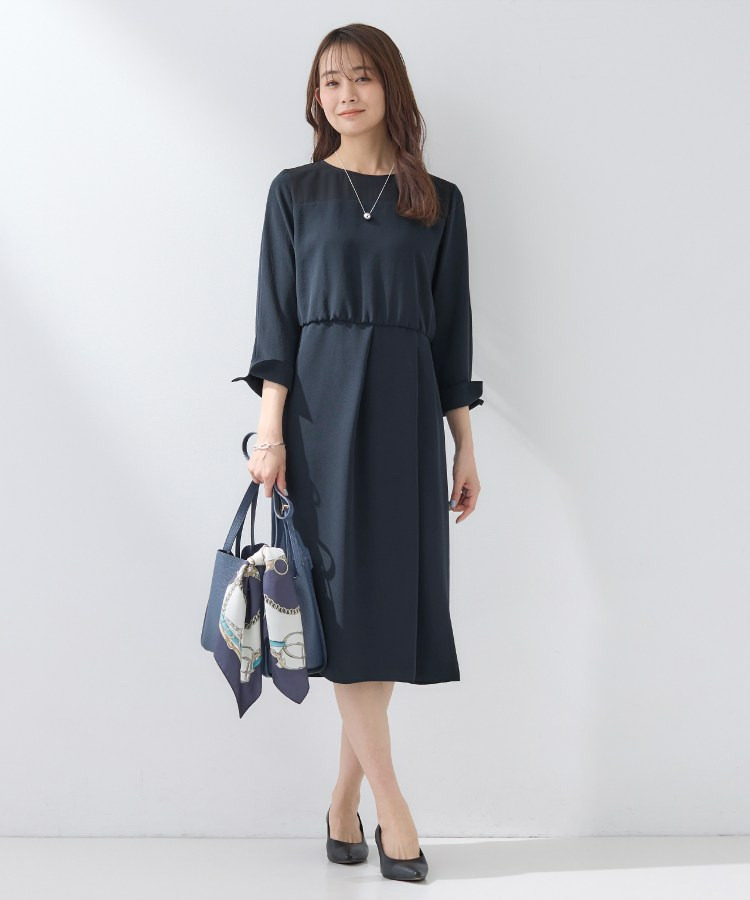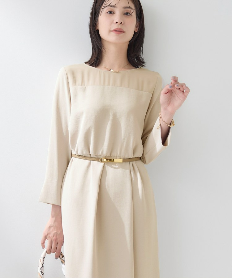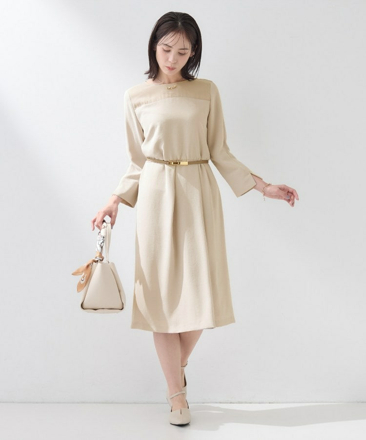 一枚でも映えるワンピースなので、オフィススタイルやセレモニーなどで活躍するアイテムです。