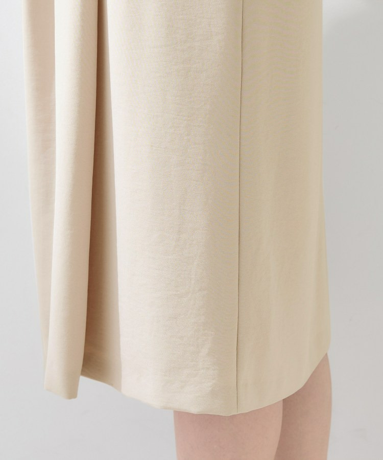 すっきりとしたナローシルエットは、カラーレスジャケットやカーディガンなどとも相性がぴったりです。
