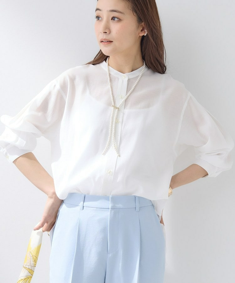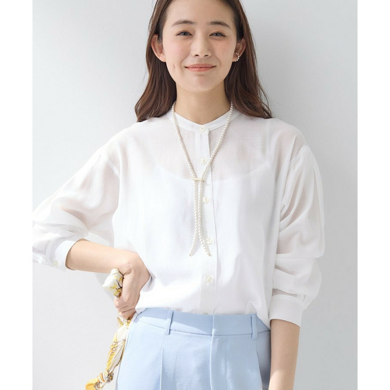 デニムやテーパードパンツで程よくカジュアルダウンしつつ、繊細な透け感でキレイめカジュアルなスタイルにしてくれます。