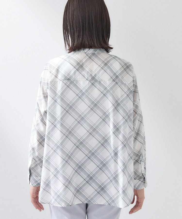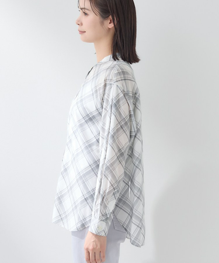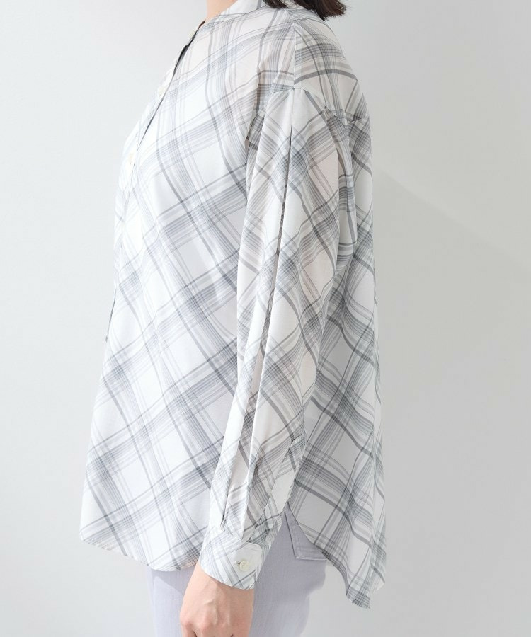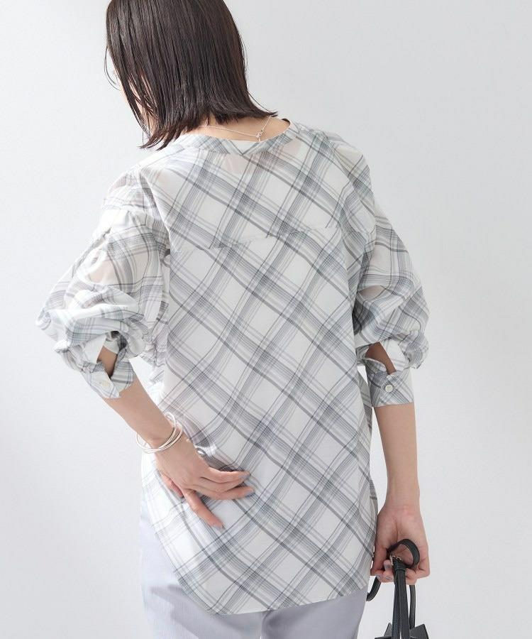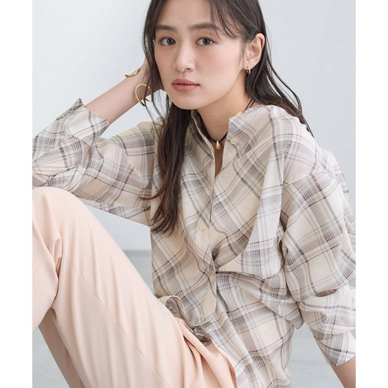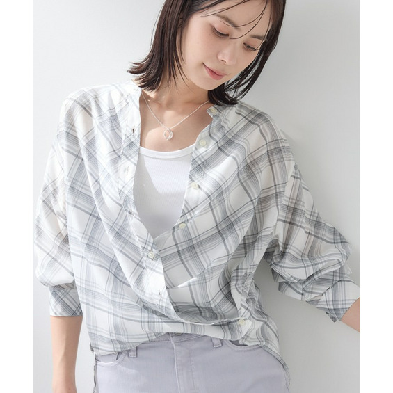 バイアス柄のチェック柄と無地の展開のあるシアーシャツです。