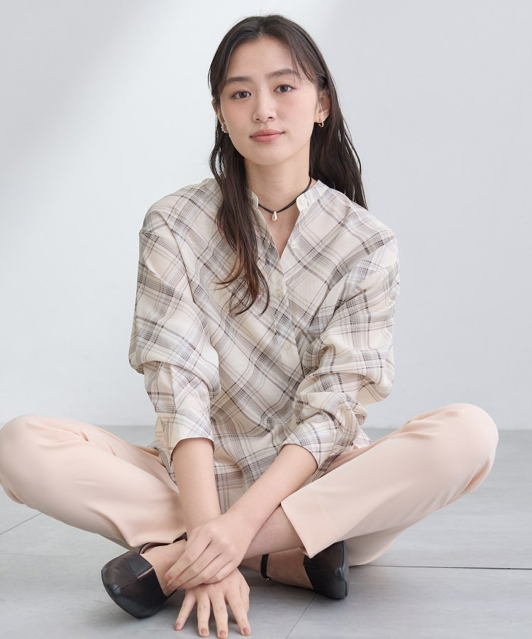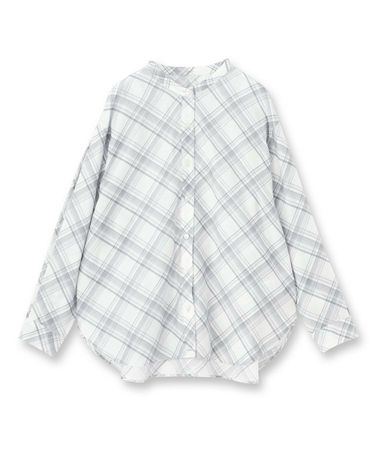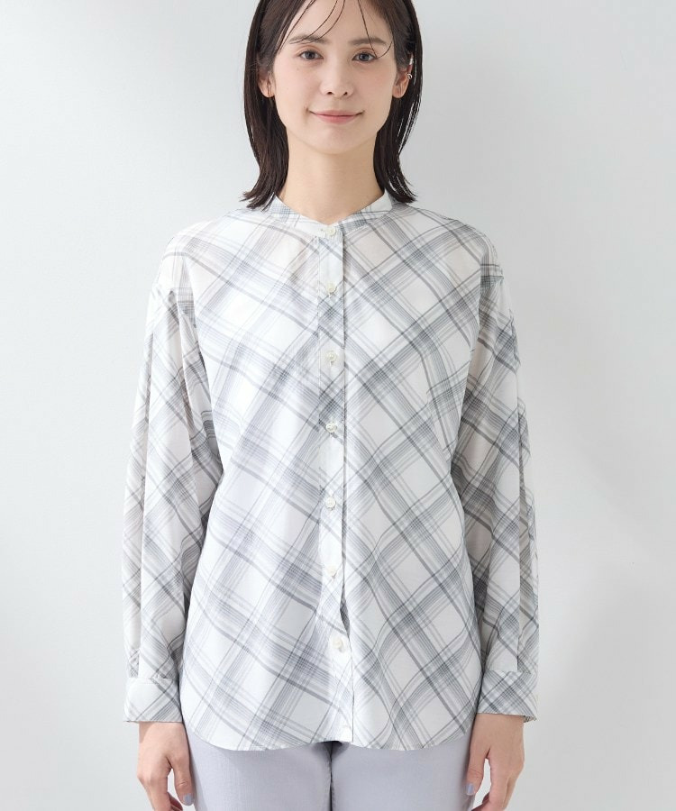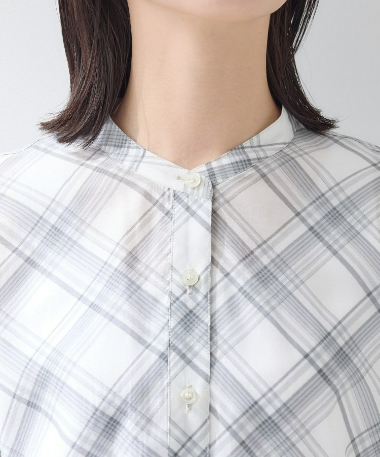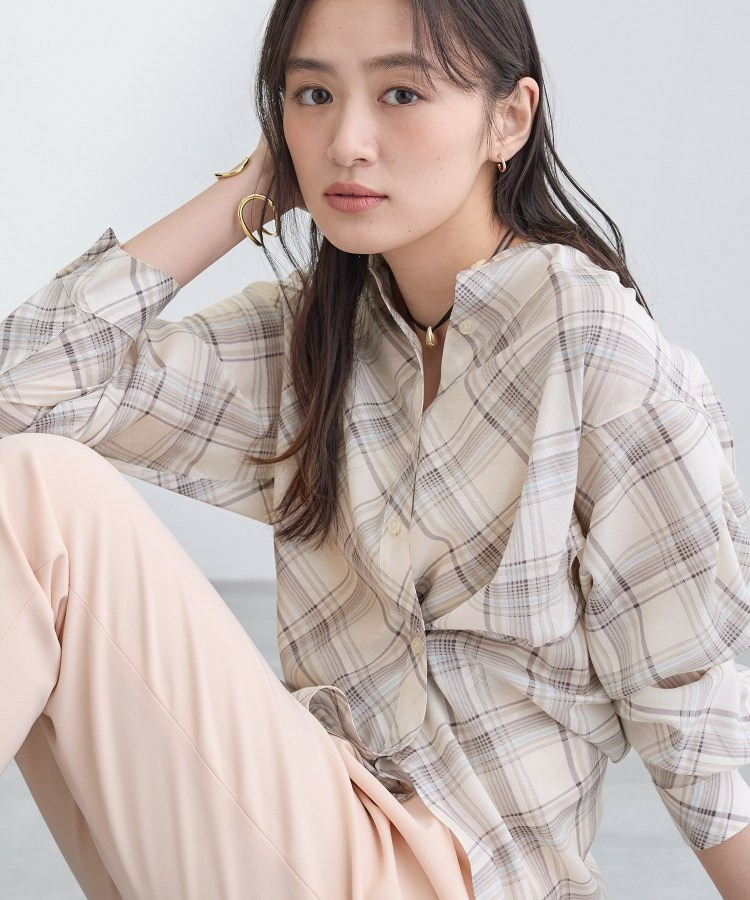 バイアス柄のチェック柄と無地の展開のあるシアーシャツです。