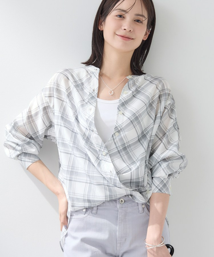 • 【2WAY/シアー】バイアスチェック柄&無地 カシュクールシャツ1