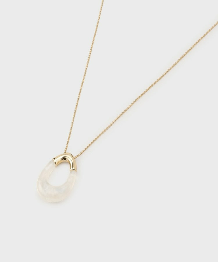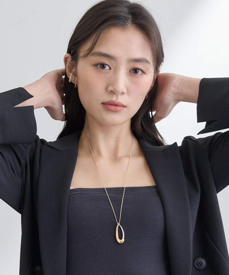 胸元で存在感を放つロングタイプのワントップネックレス。