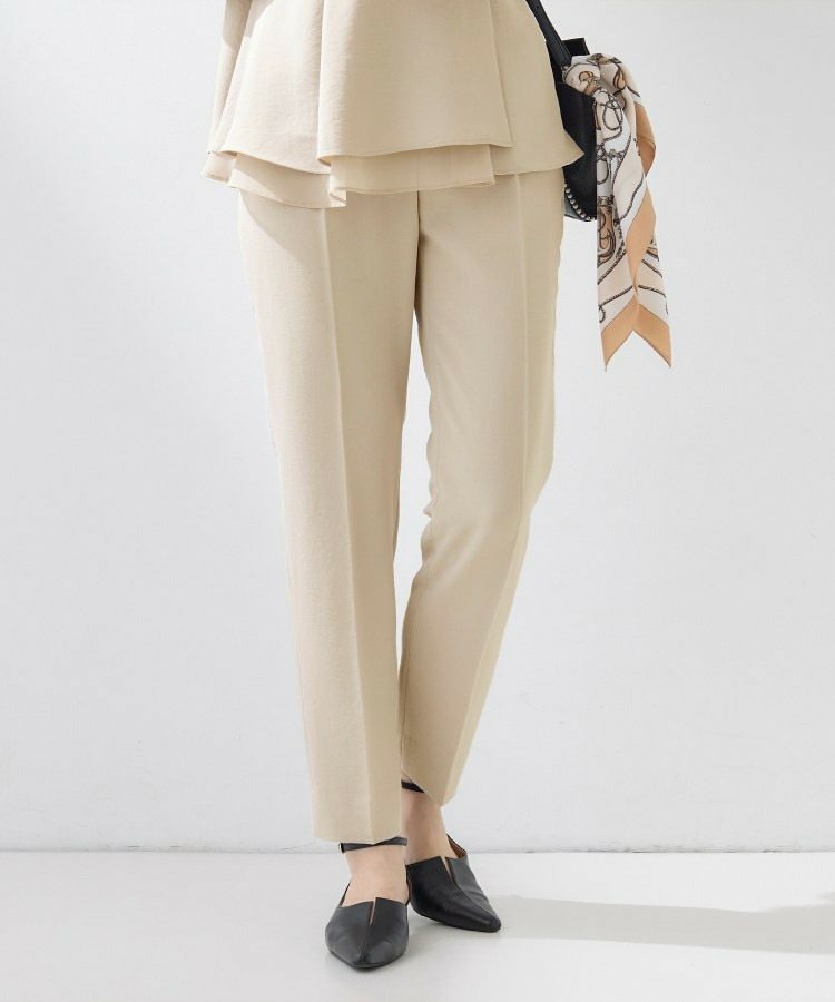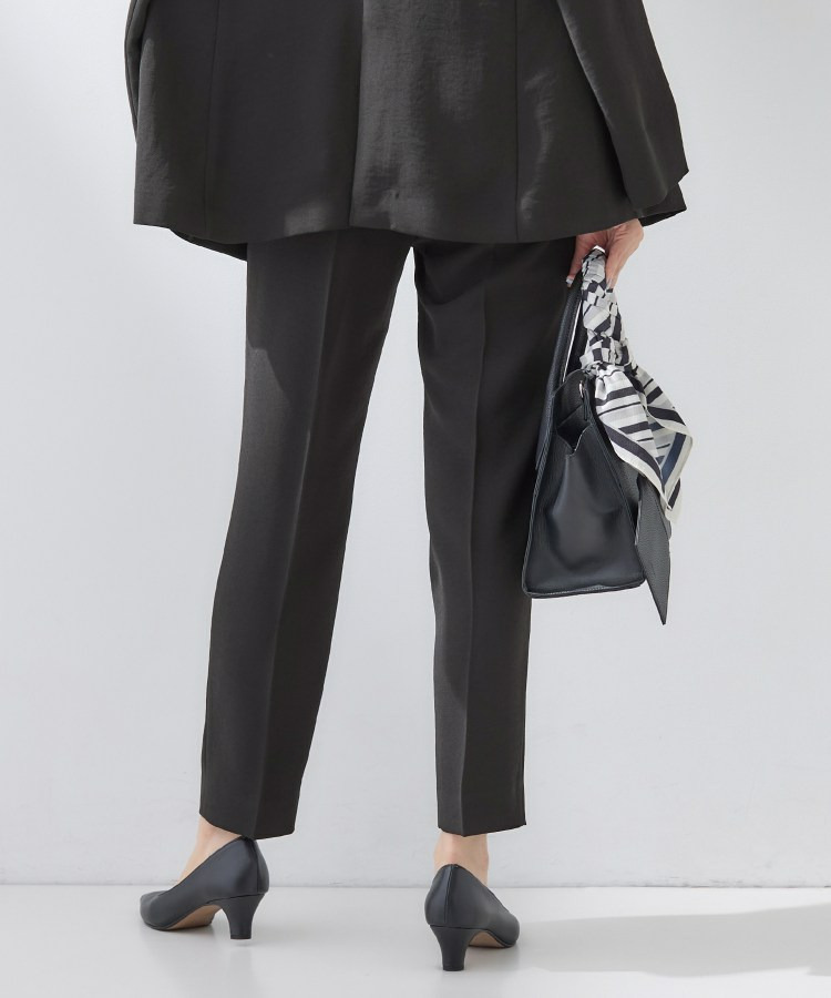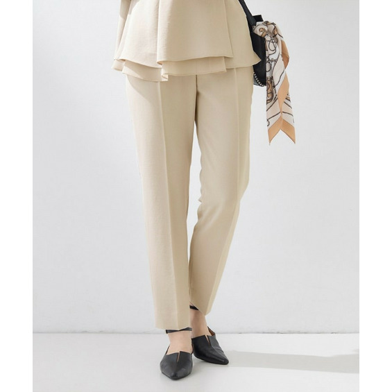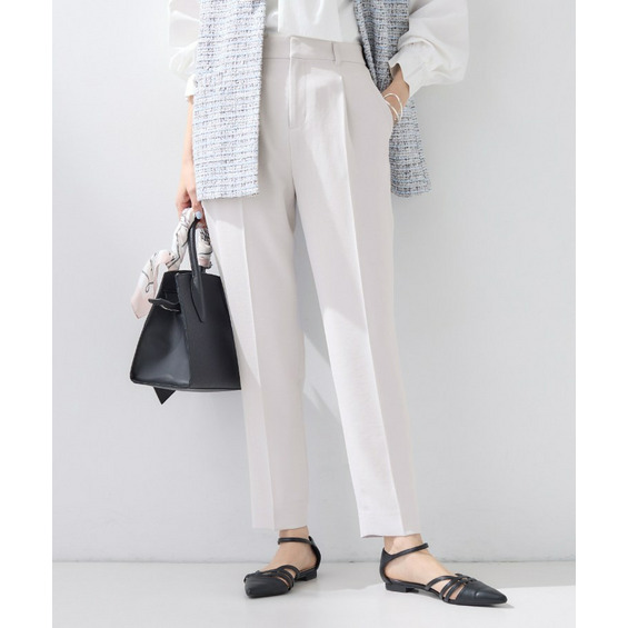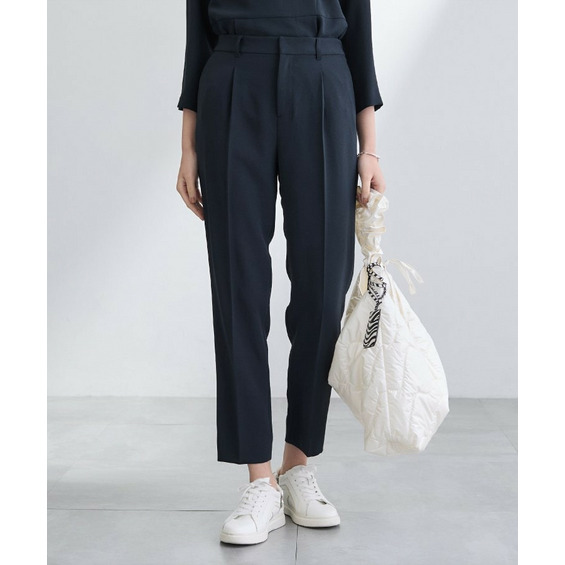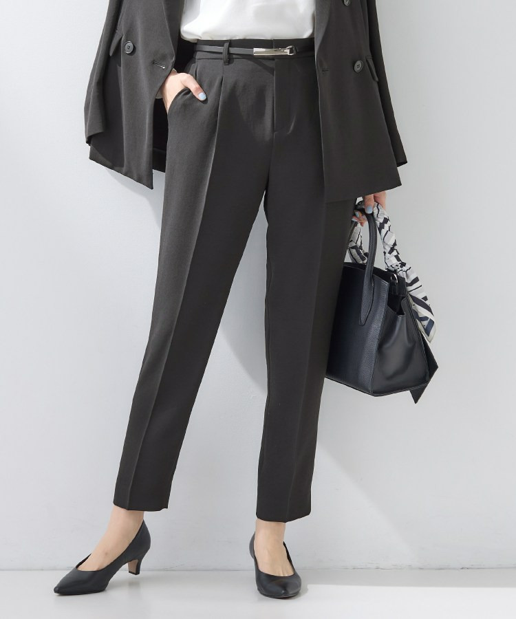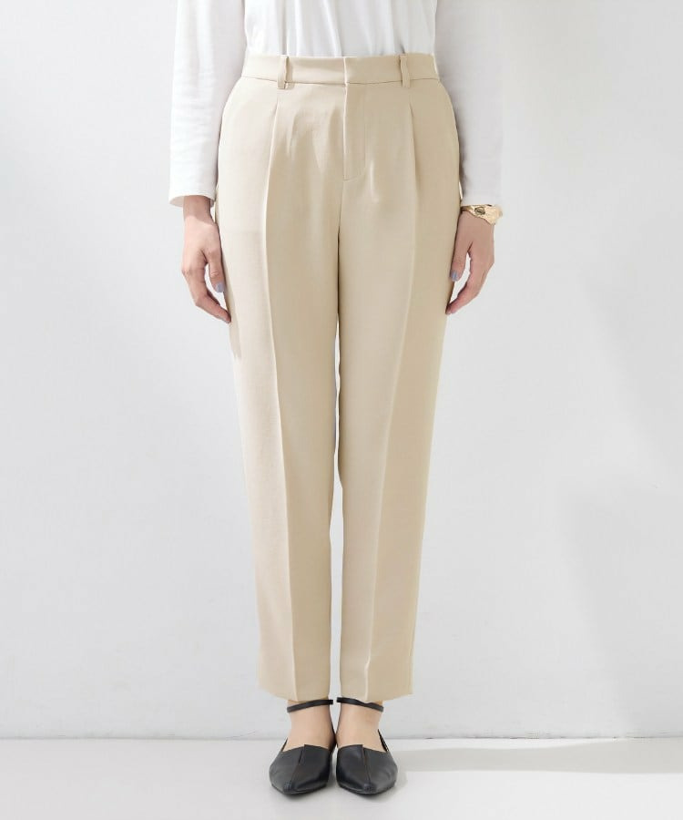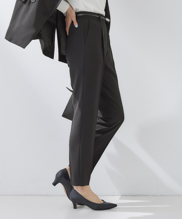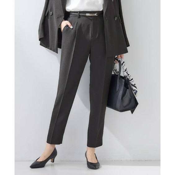 程よい落ち感のある素材を使用し、リラックス感がありながらも、キレイめな印象のスーツ定番のタックテーパードパンツです。