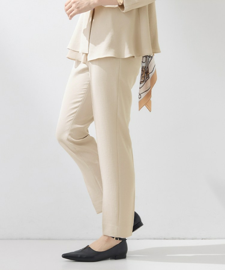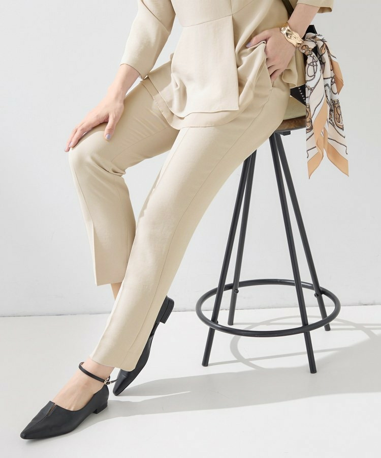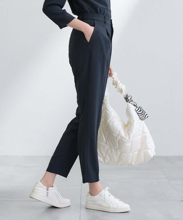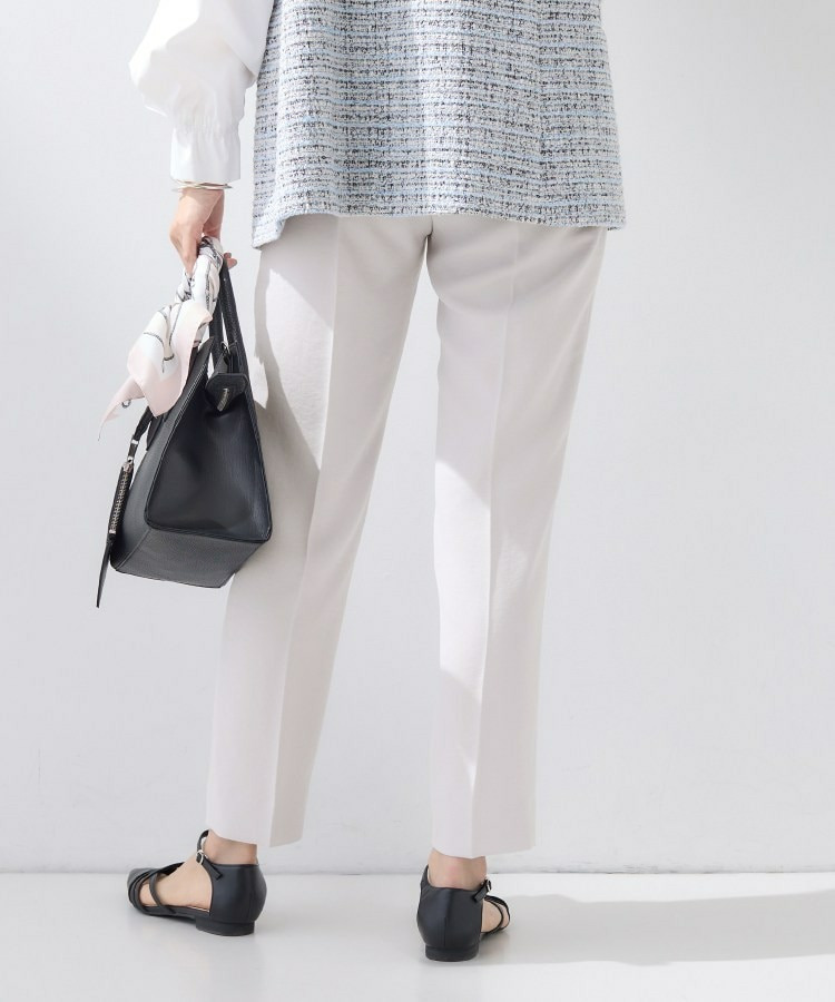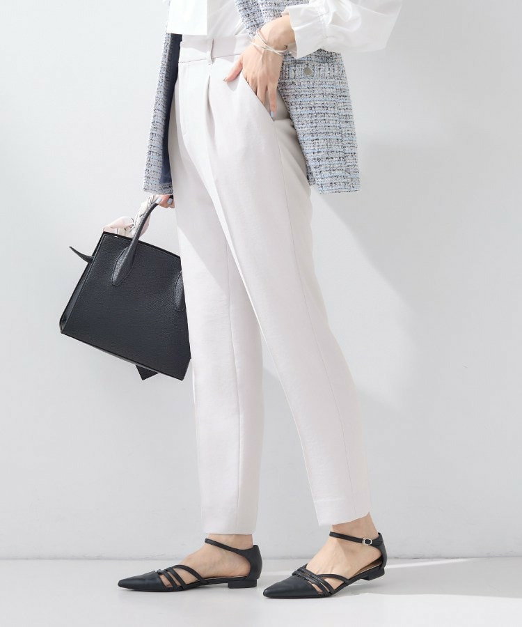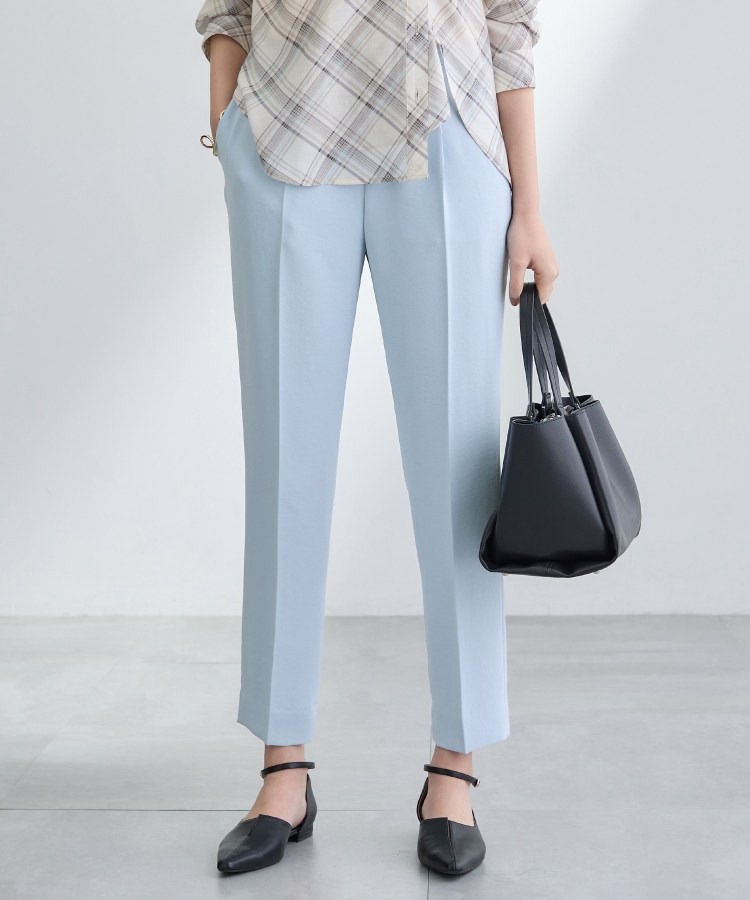 程よい落ち感のある素材を使用し、リラックス感がありながらも、キレイめな印象のスーツ定番のタックテーパードパンツです。