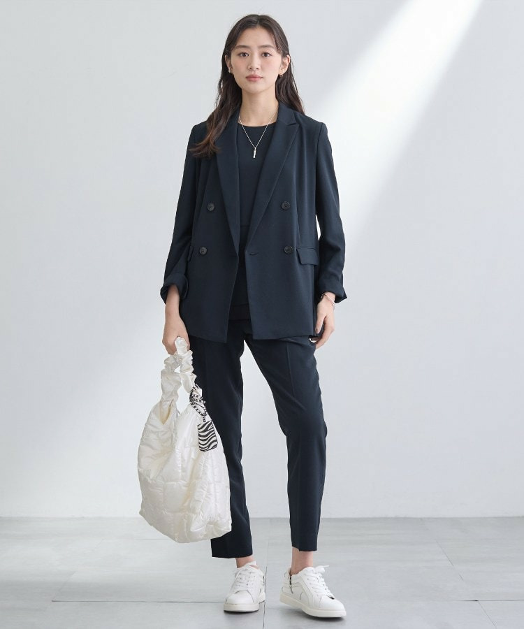 同素材のジャケットとセットアップとして合わせていただくと、キレイめできちんと感があるので、学校行事や通勤用として幅広く活躍します。
