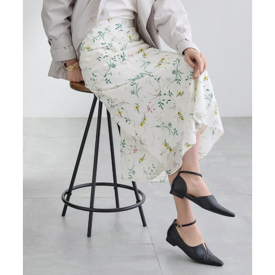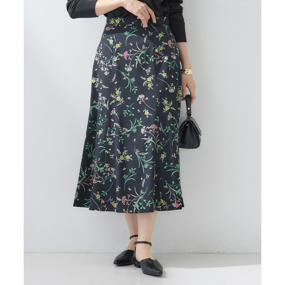 華やかなプリント柄は、映えるデザインスカートとしてブラウス・ニットなど様々なアイテムとご着用いただけます。
