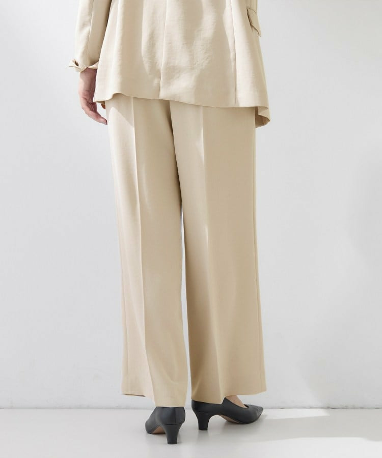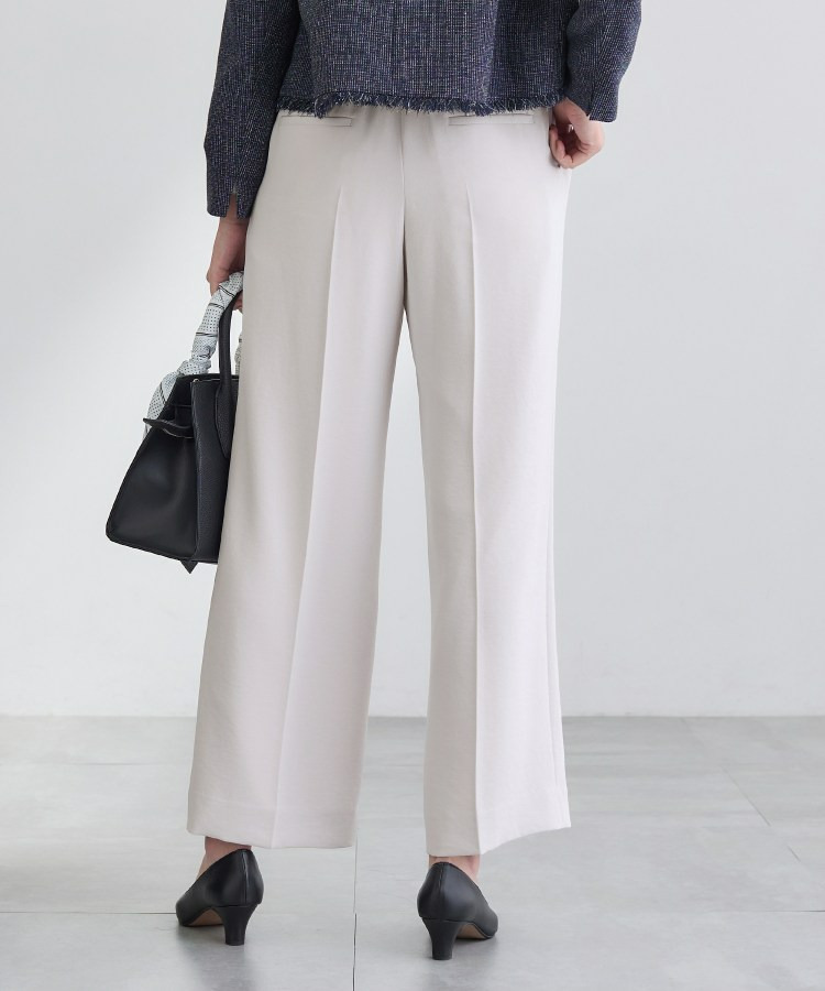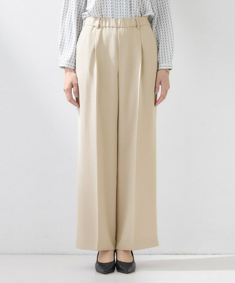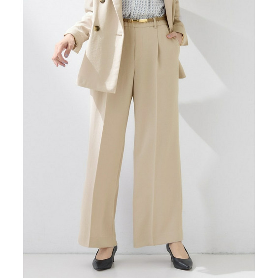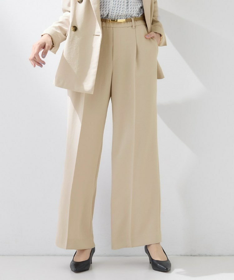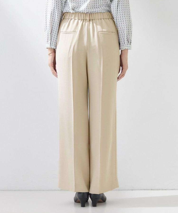 ウエストに入れたタックでゆとりがありますが、センタープレスによりすっきりと穿いていただけます。