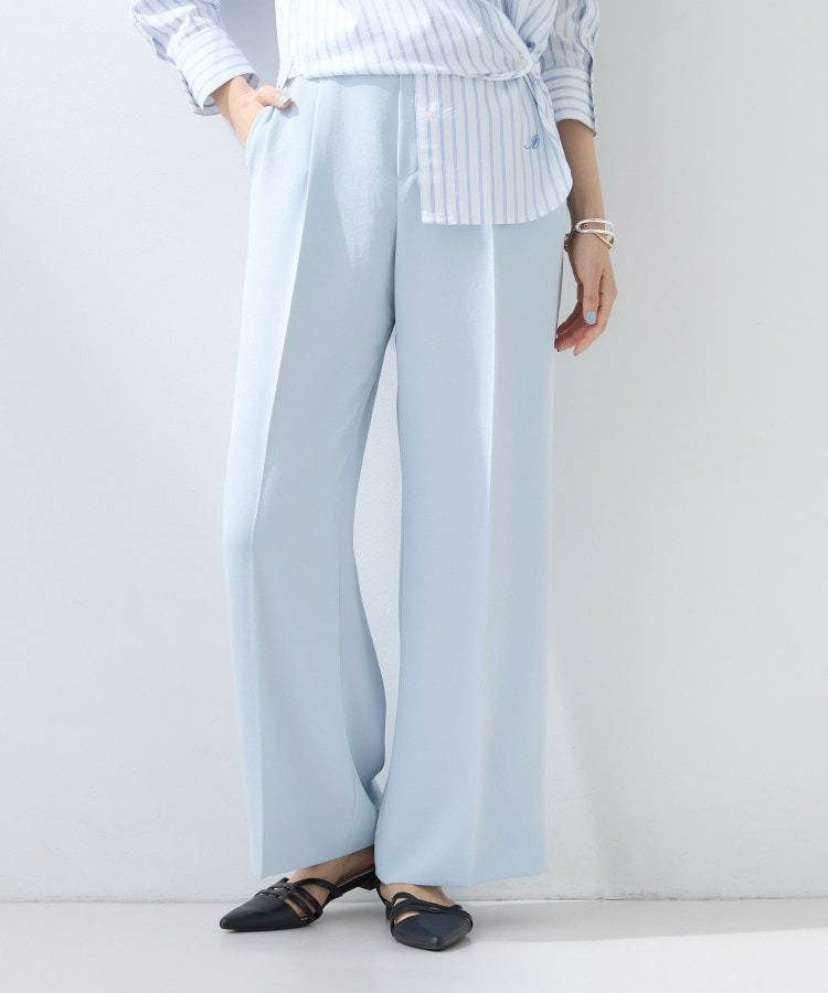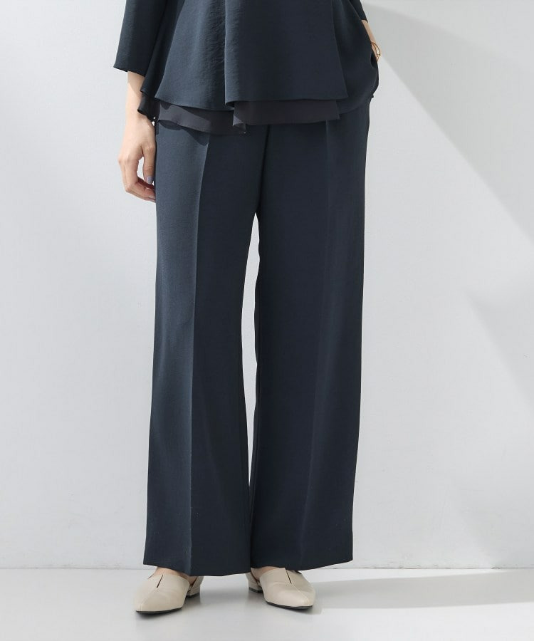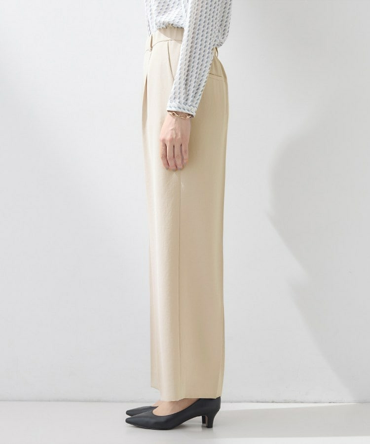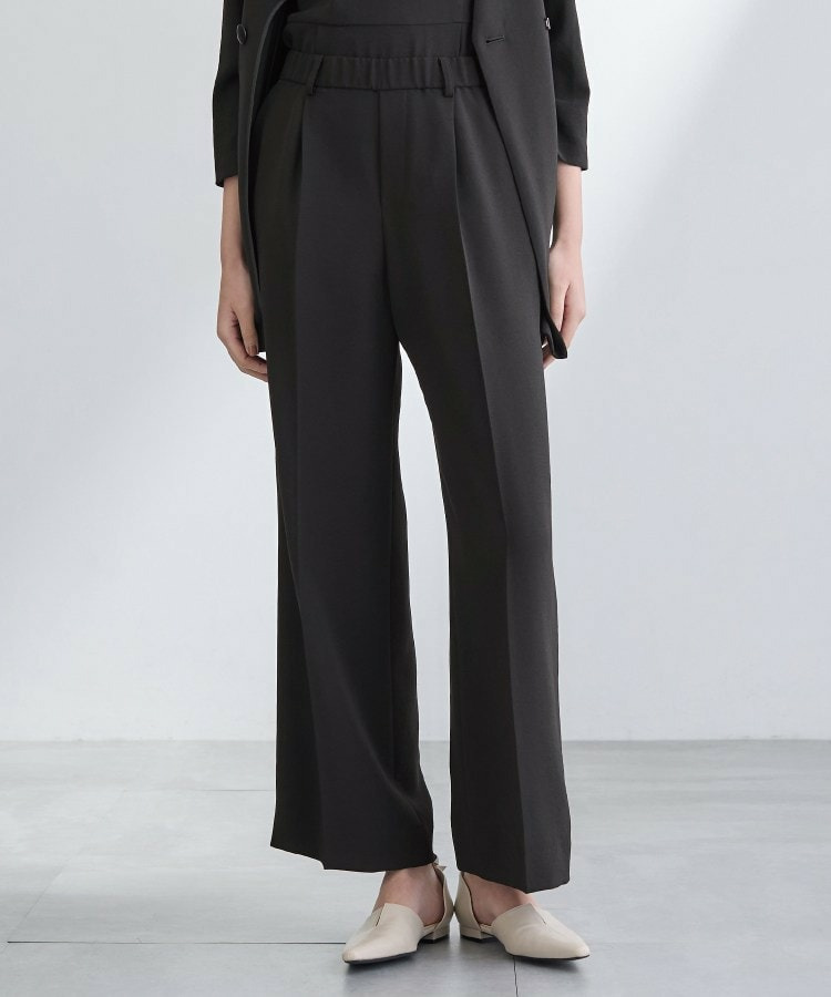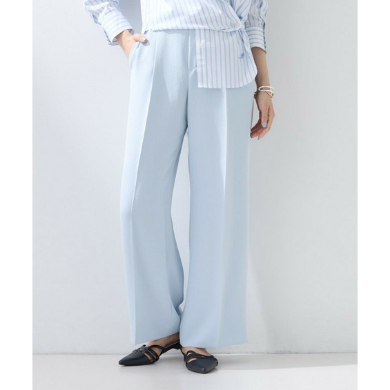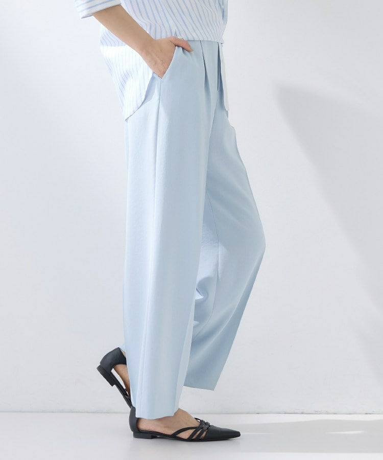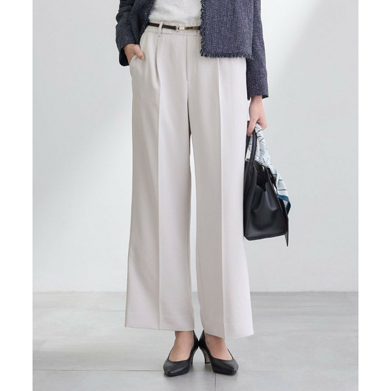 ウエストに入れたタックでゆとりがありますが、センタープレスによりすっきりと穿いていただけます。