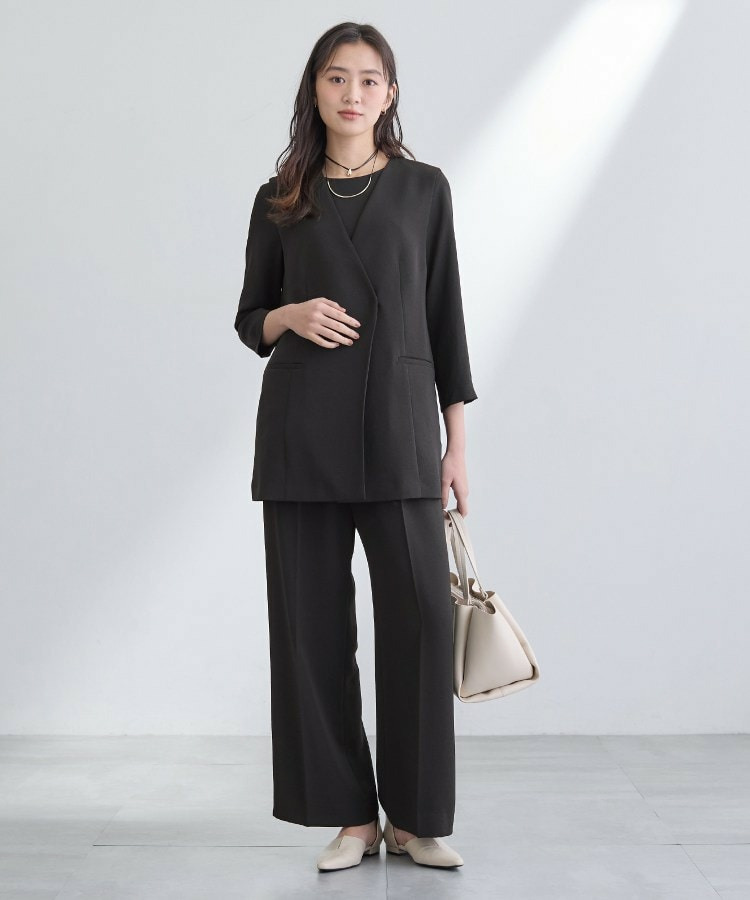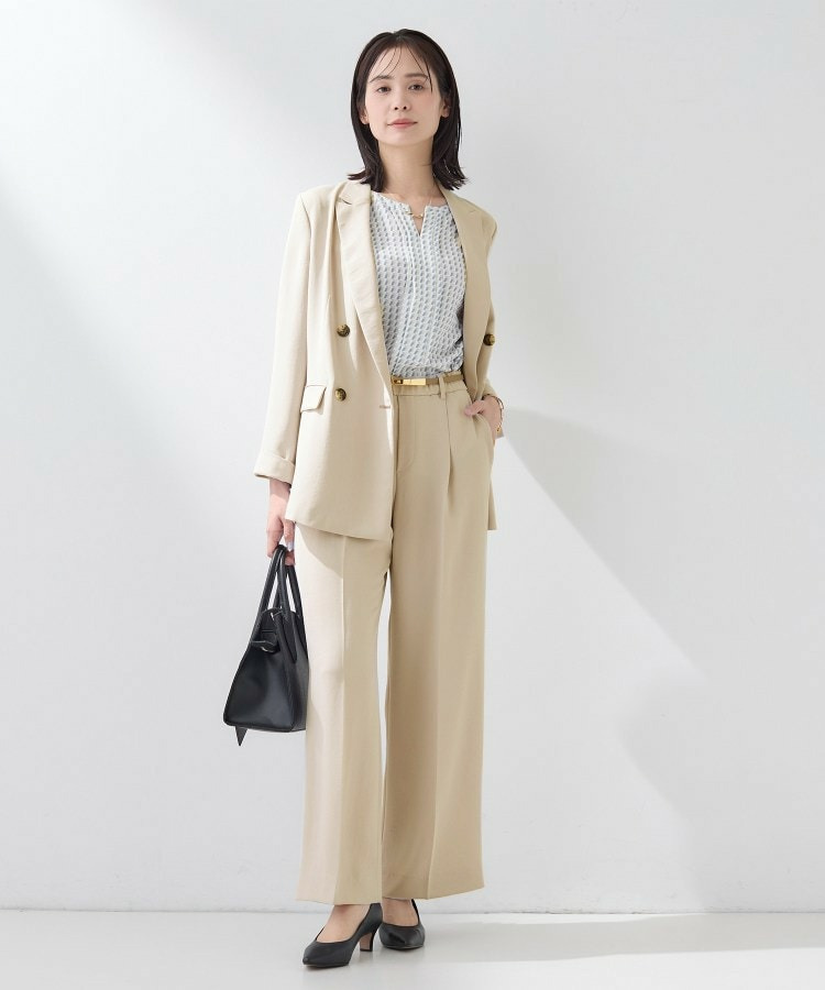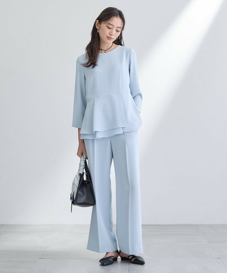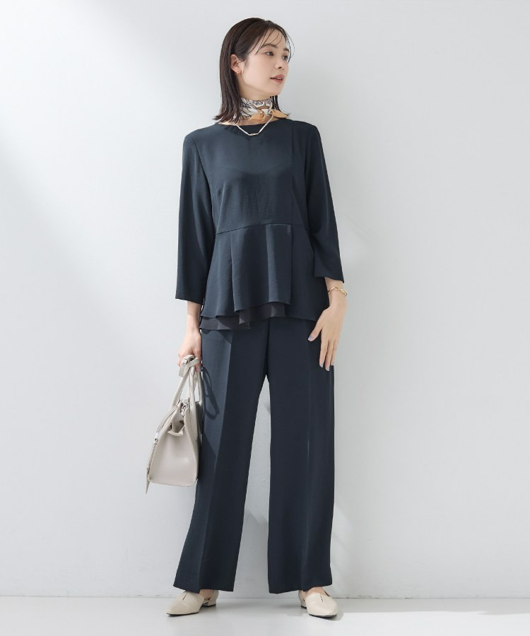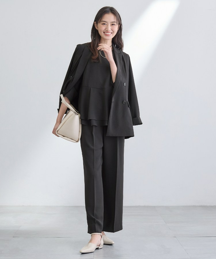 同素材のペプラムブラウスと合わせたセットアップスタイルもセレモニー、通勤用としておすすめです。