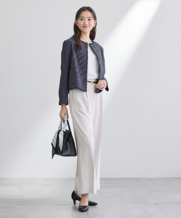 同素材のジャケットとセットアップとして合わせていただくと、キレイめできちんと感があるので学校行事、通勤用として幅広く活躍します。