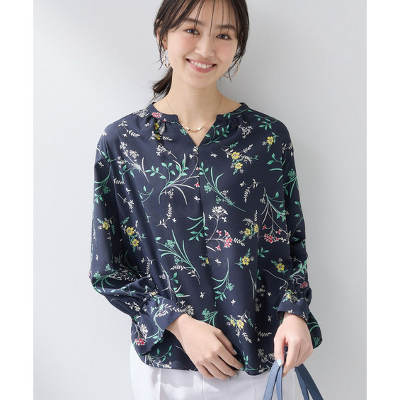 華やかなプリント柄は、映えるデザインブラウスとしてスカート・パンツを問わずご着用いただけます。