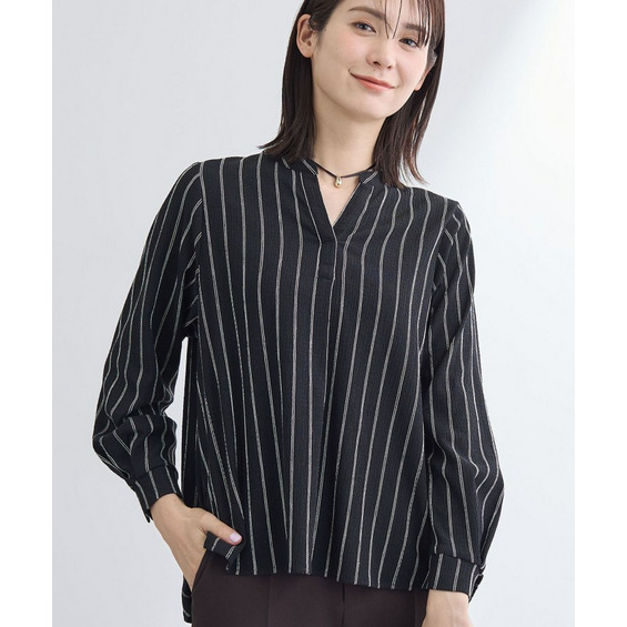 【洗える/着心地楽ちん】ブラウス風ストライプカットソートップス