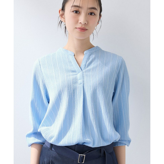 顔周りをすっきりと見せるスキッパー衿を採用し、程よい抜け感と女性らしさを演出します。