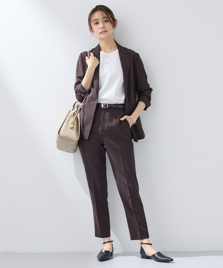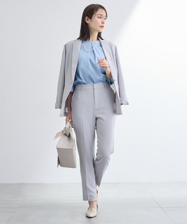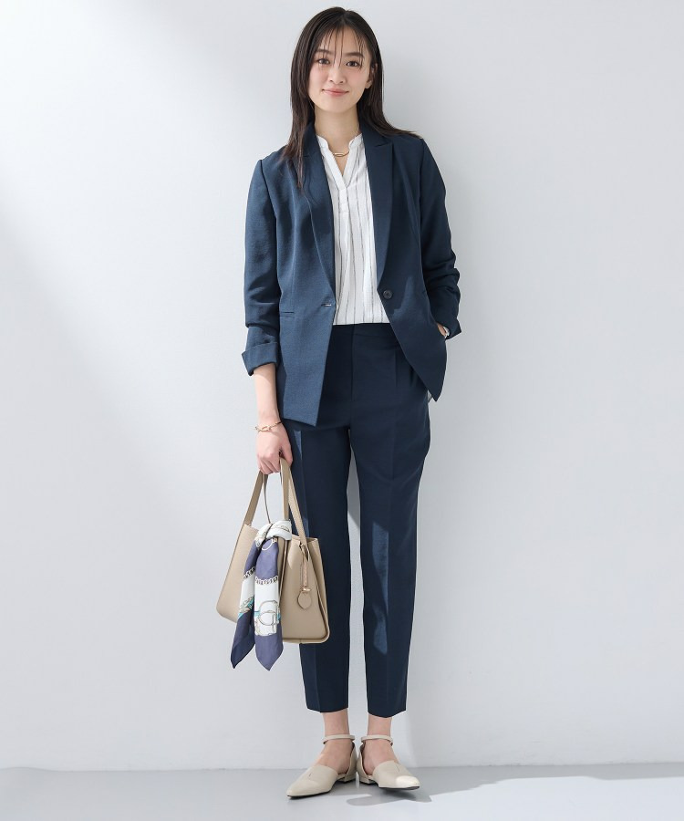 同素材のジャケット(127-45403)とのセットアップスタイリングがおすすめです。