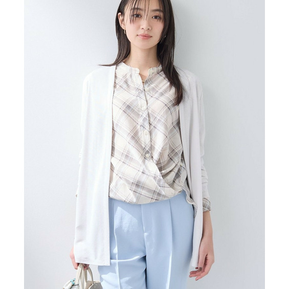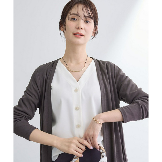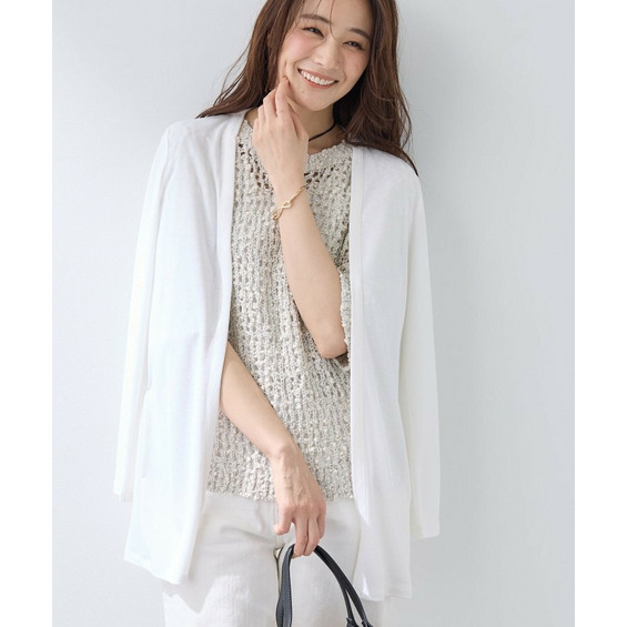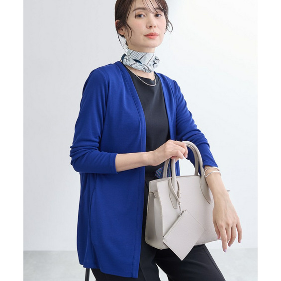 コンパクトなサイジングでお仕事シーンや冷房対策にも活躍するベーシックな着流しカーディガンです。