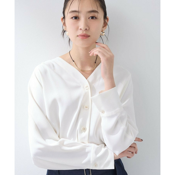 落ち感のあるマットなサテン素材を使用したVネックブラウスです。