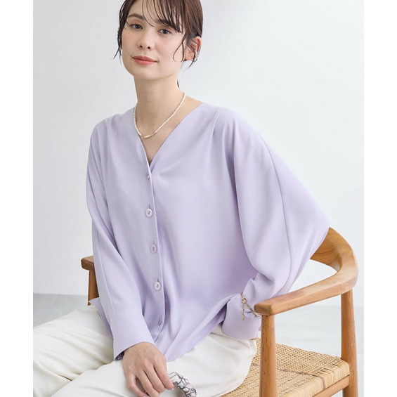 【洗える/UVケア/マットサテン】Vネックドルマンスリーブブラウス