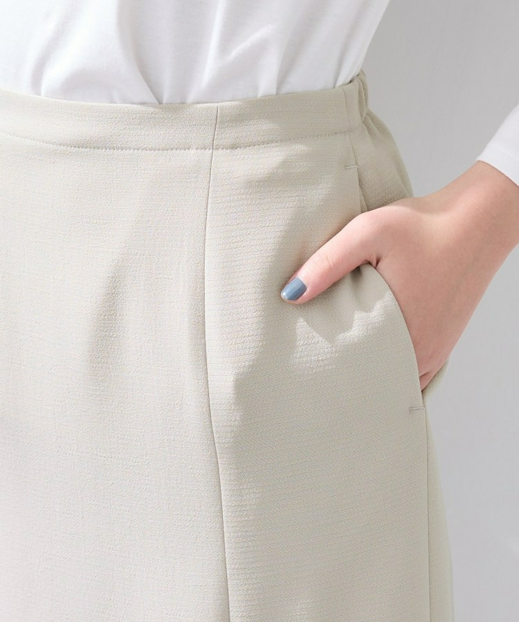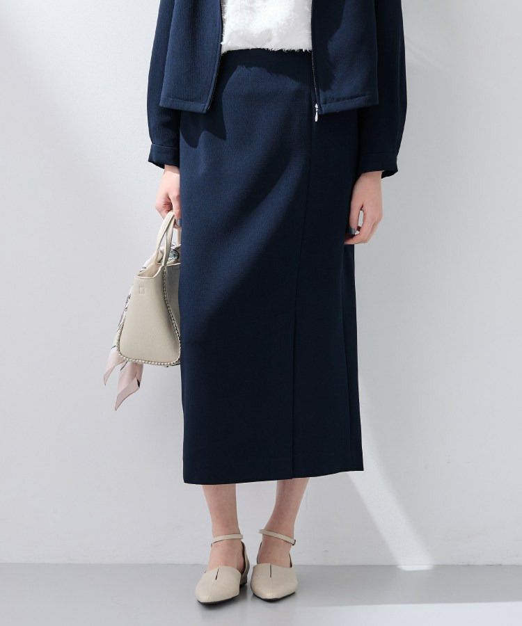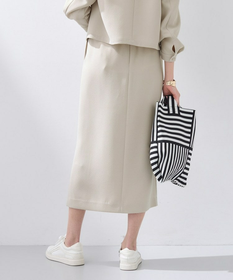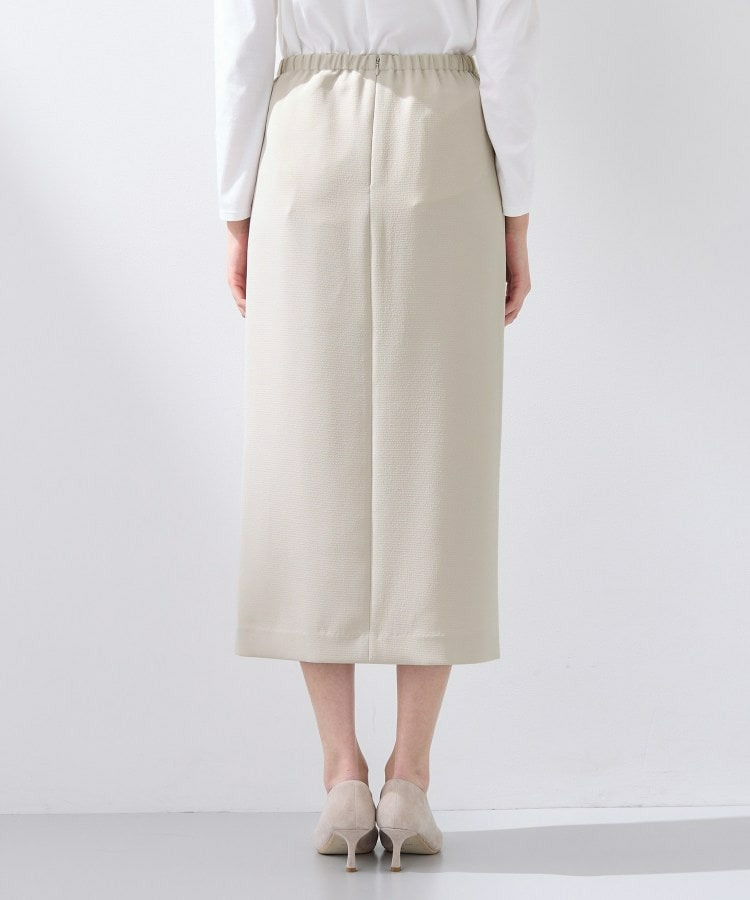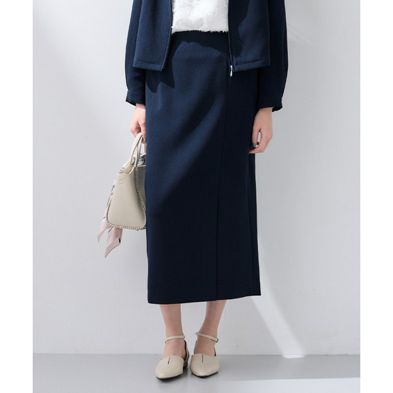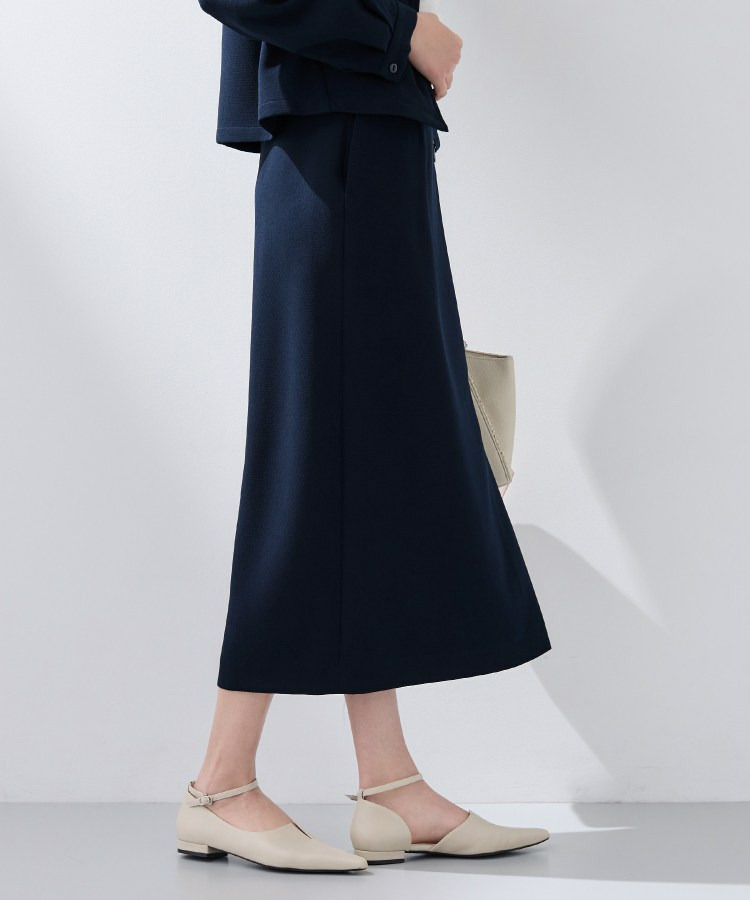 すっきりとした縦のシルエットはスタイルアップ見えし、後ろウエストはゴム仕様なので履き心地もイージーなスカートとなっています。