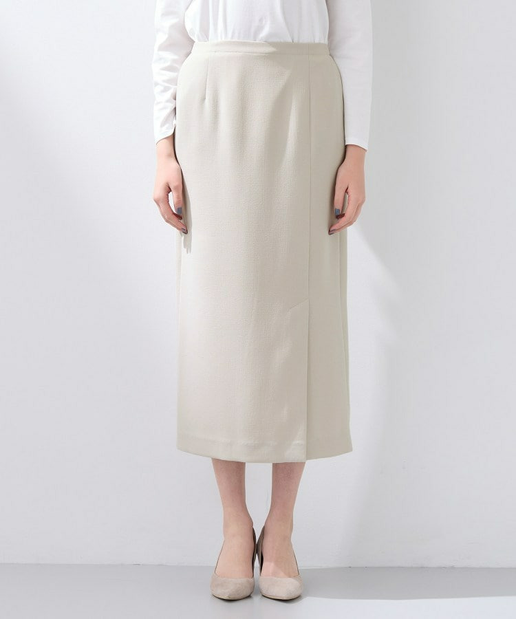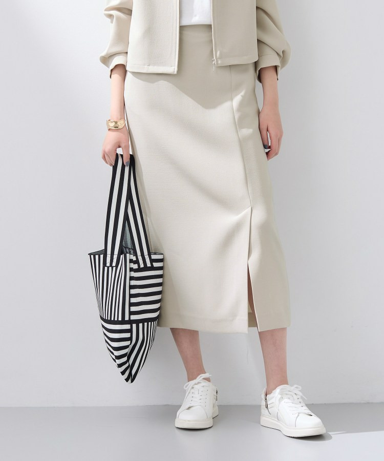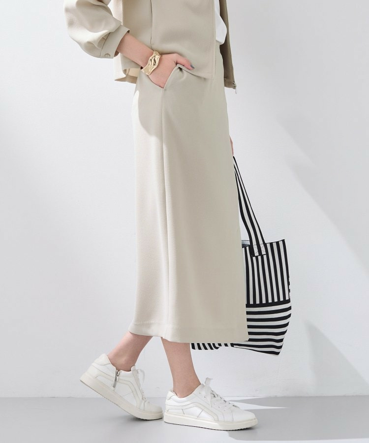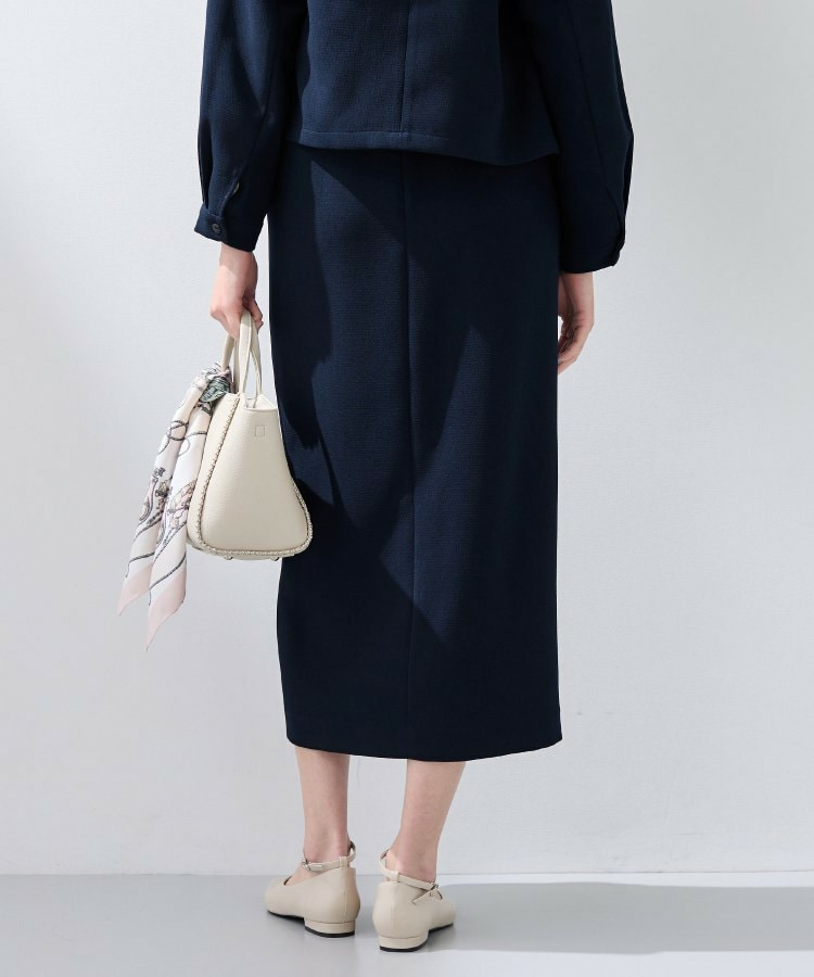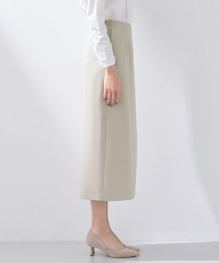 すっきりとした縦のシルエットはスタイルアップ見えし、後ろウエストはゴム仕様なので履き心地もイージーなスカートとなっています。