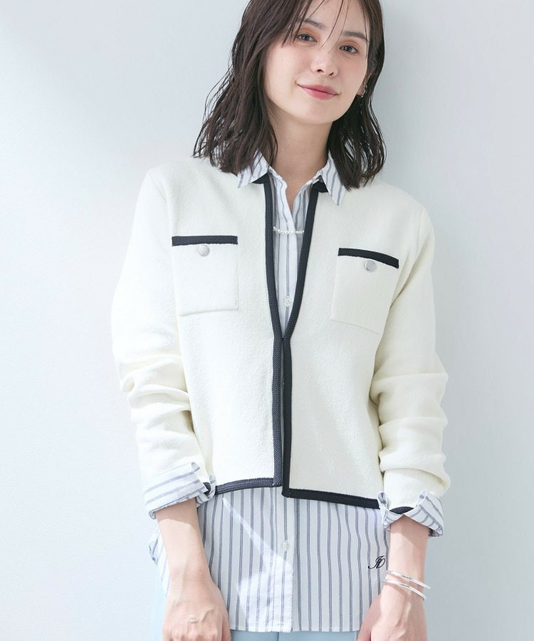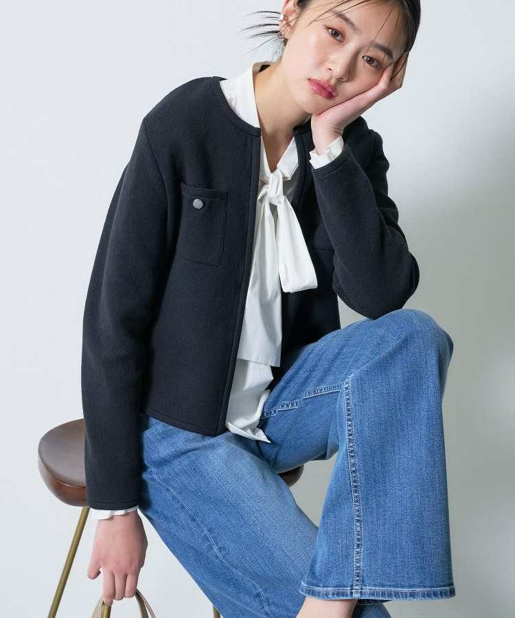 ジャケットのきちんと感とカーディガンの手軽さを兼ね備えた、春のライトアウターとして重宝する一枚。