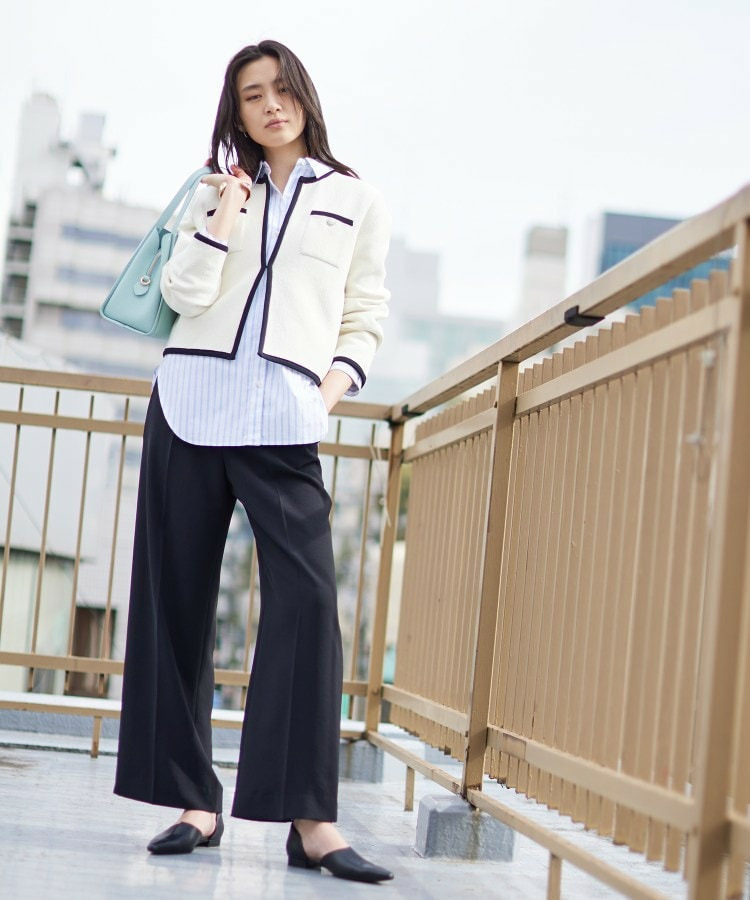 ふくらみのあるブークレの風合いが、ボクシーな定番シルエットに奥行きを与え、上品でリッチな印象に仕上げています。