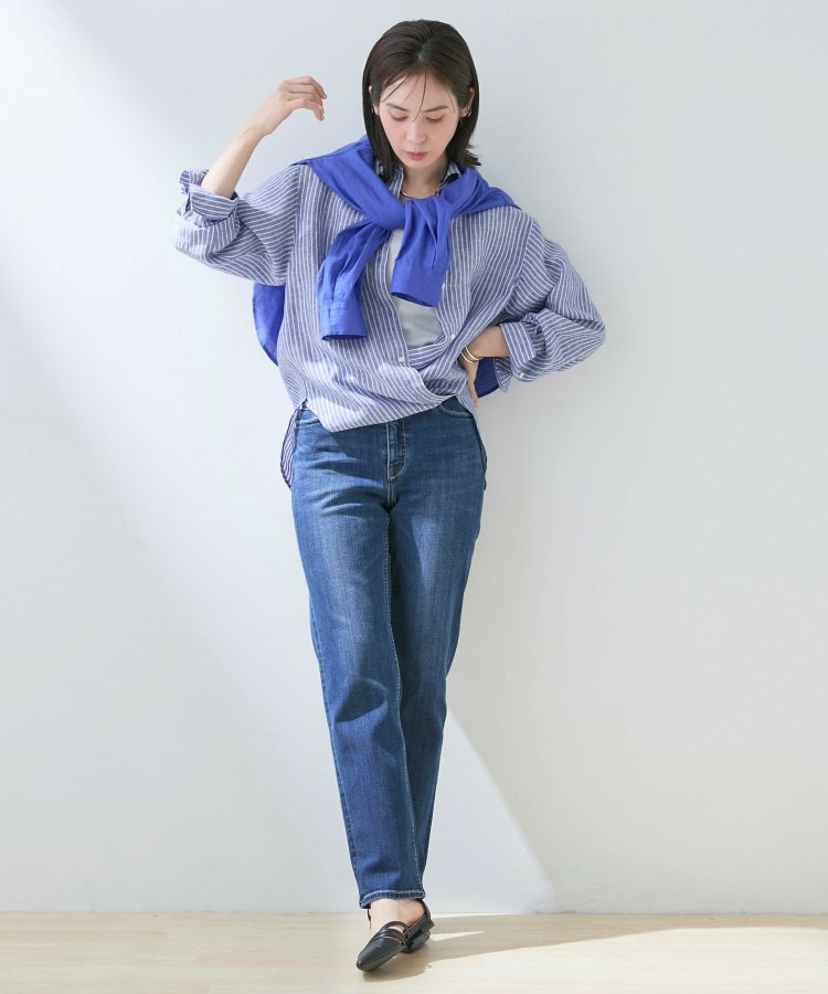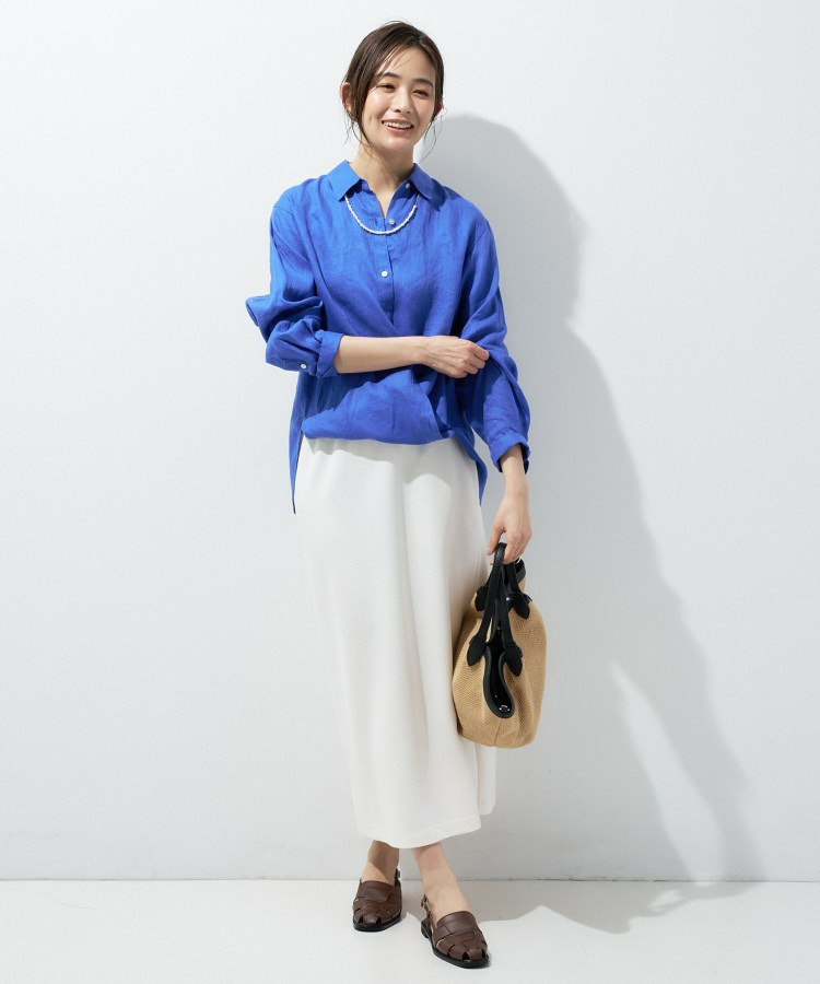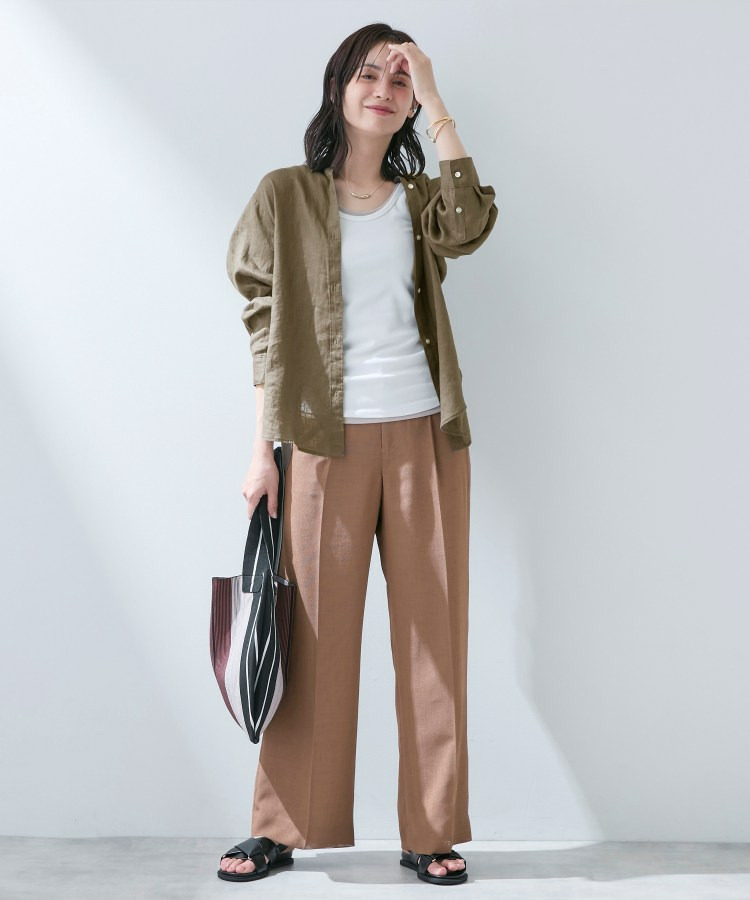 ハリ感と落ち感を兼ね備えているため、オフィススタイルにもカジュアルスタイルにも馴染みます。