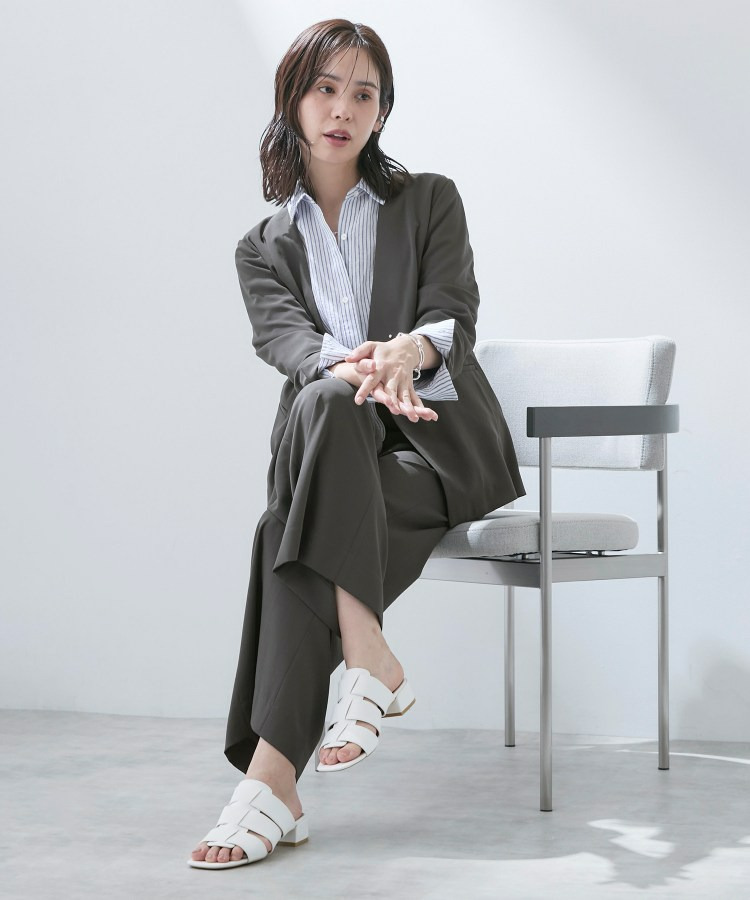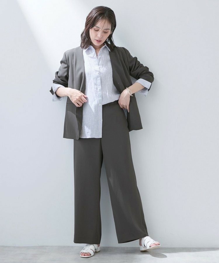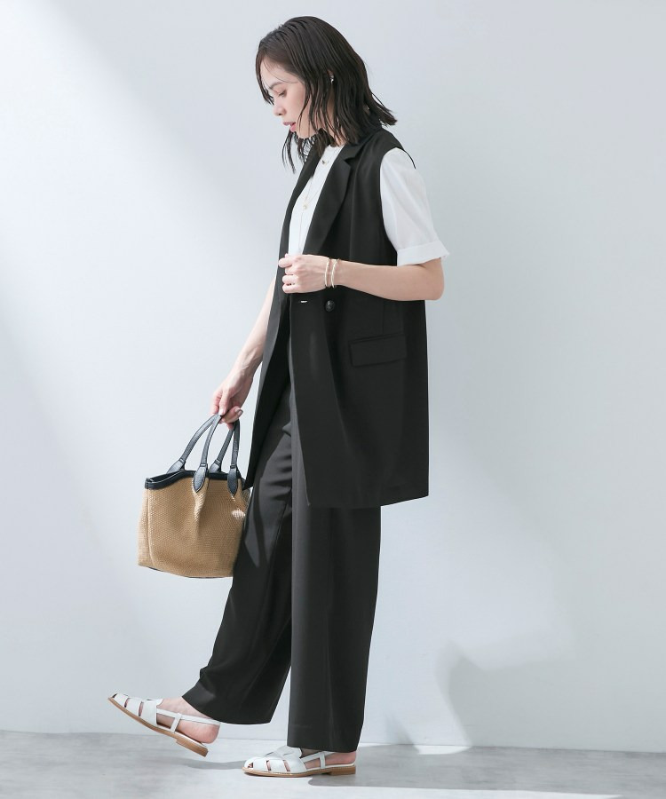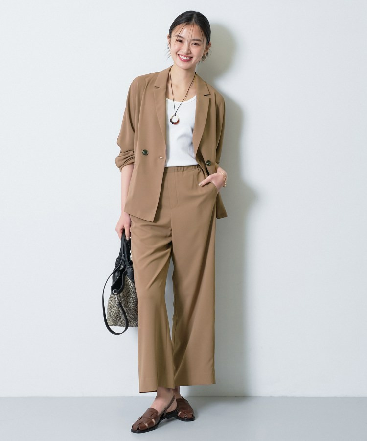 ストレートなシルエットと軽快な素材が、脚長効果ときれいめな印象を両立します。