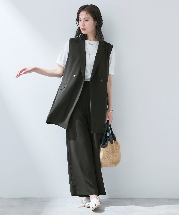 同素材のジャケットやジレ、トップスと合わせるセットアップスタイルは、機能的で洗練された印象に。