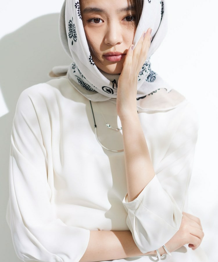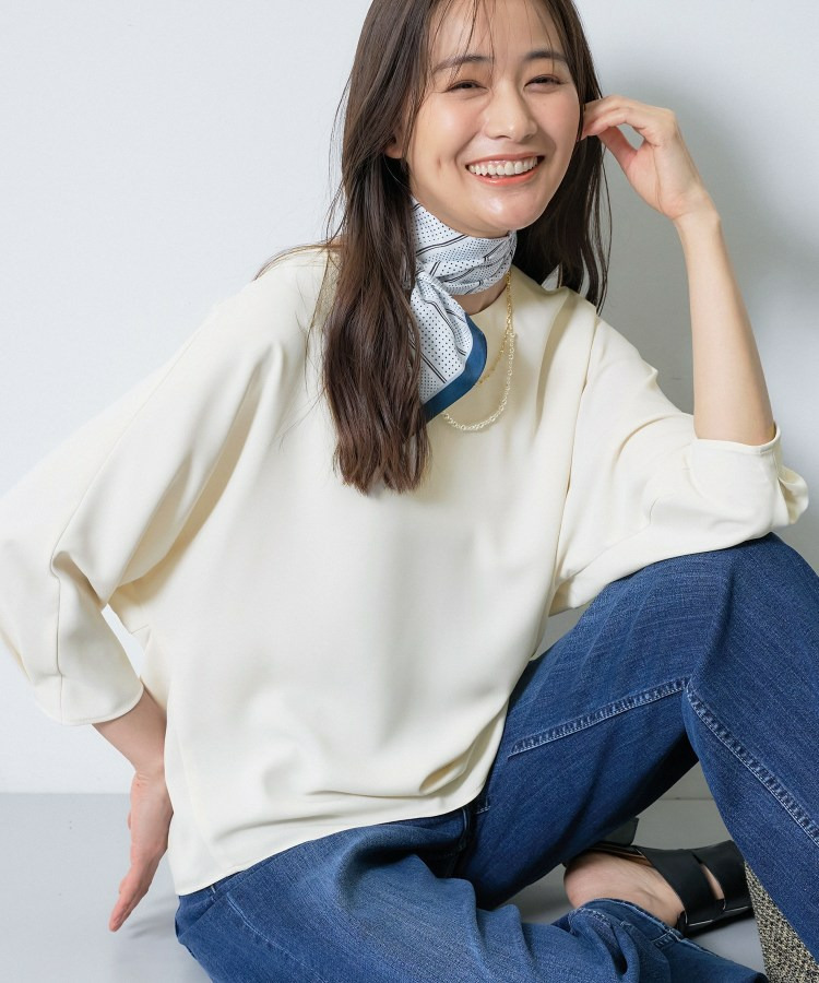顔周りがすっきりと見えるネックラインで、オフィスにも対応できる上品さです。