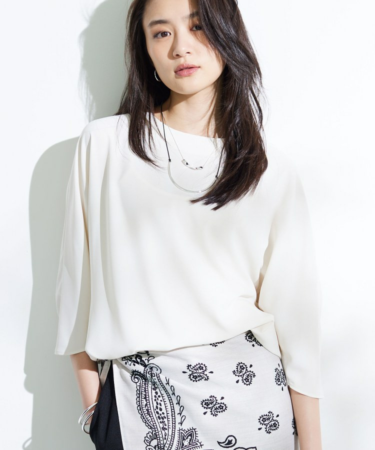 ゆったりとした身幅と、後ろにかけてたぷっと落ちるような立体的なフォルムが、着るだけで自然なドレープを生み出し女性らしさを引き立てます。