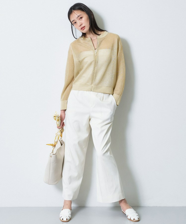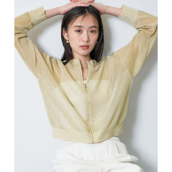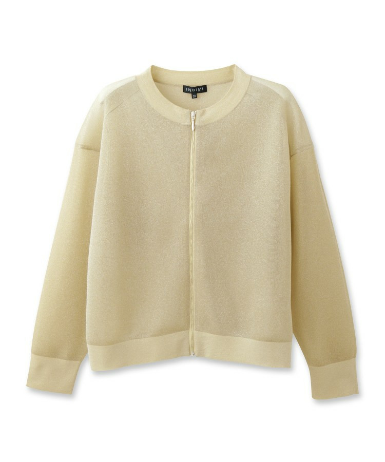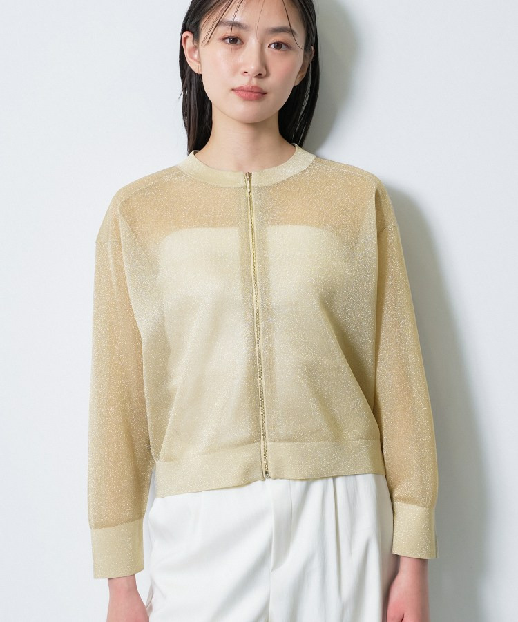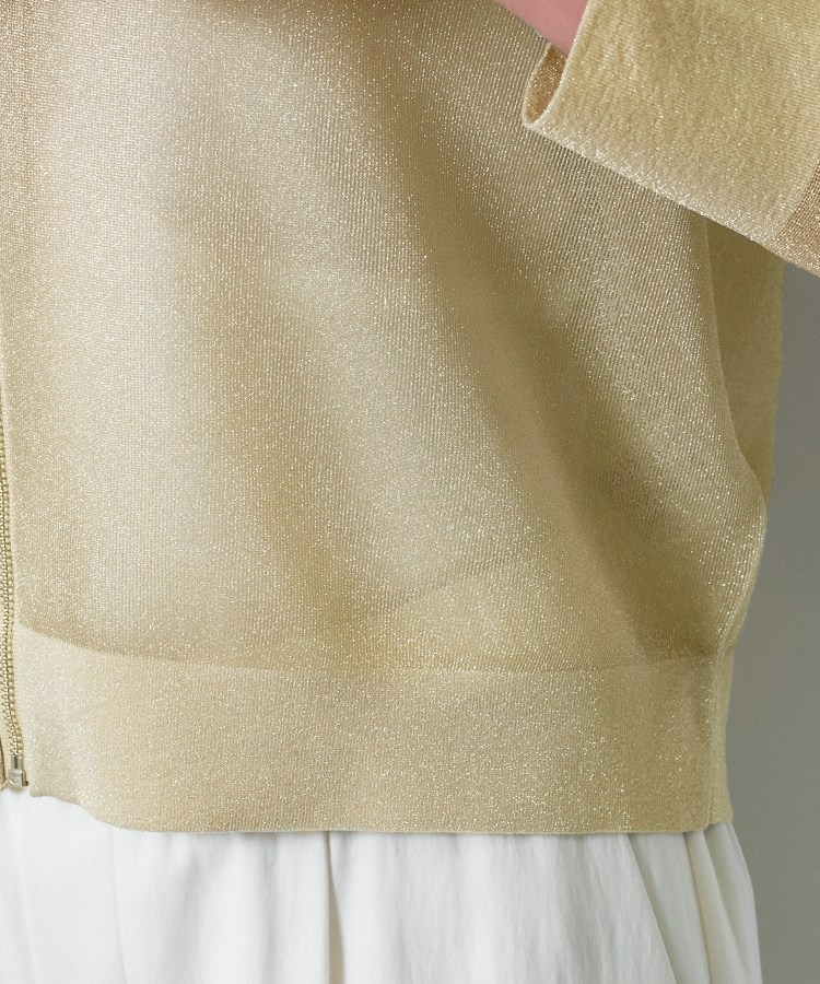 【洗える/シアーラメ】ブルゾン風ジップアップニットカーディガン