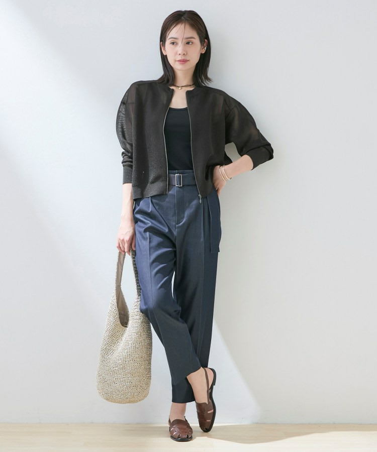 シアーな質感が抜け感を演出し、シンプルなカジュアルコーデもぐっと今っぽい印象に仕上がります。
