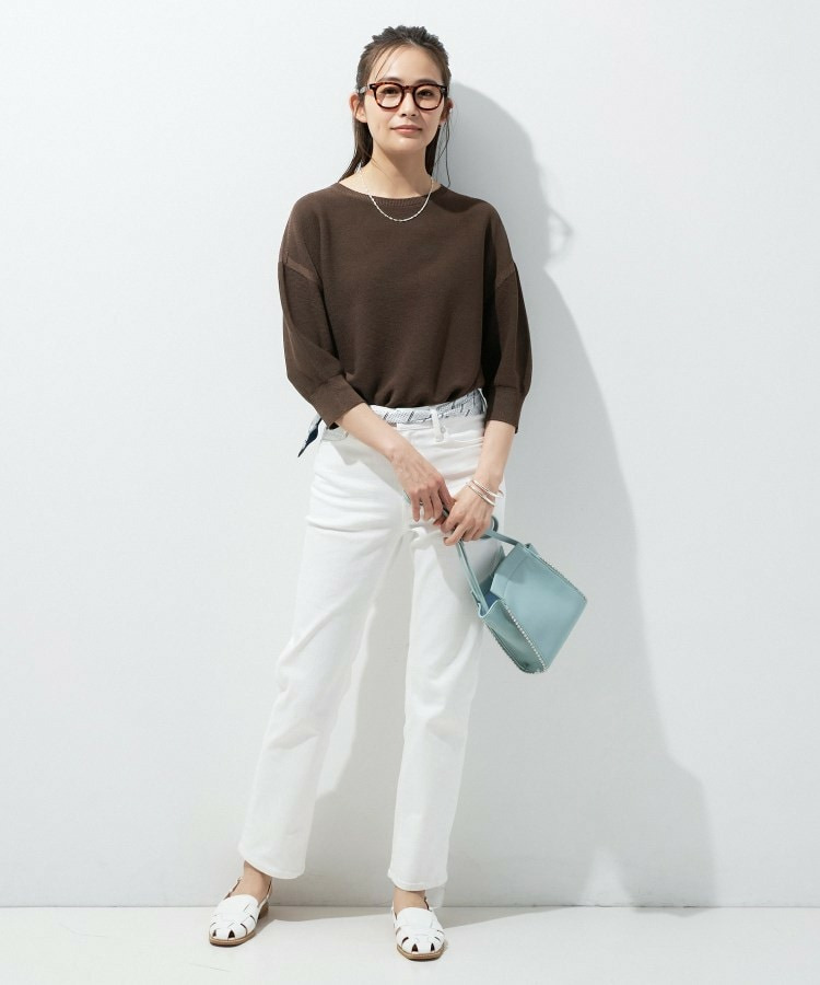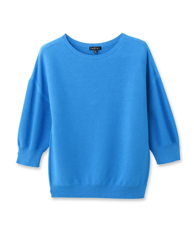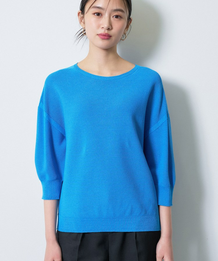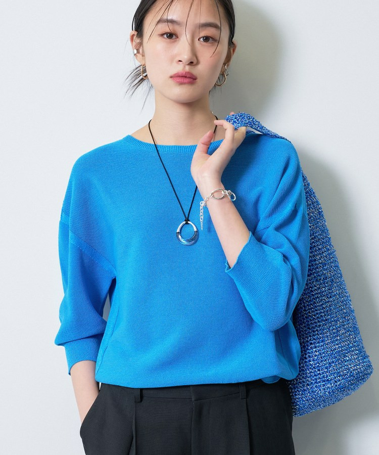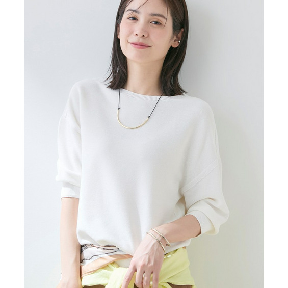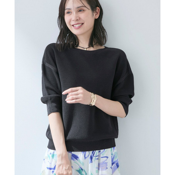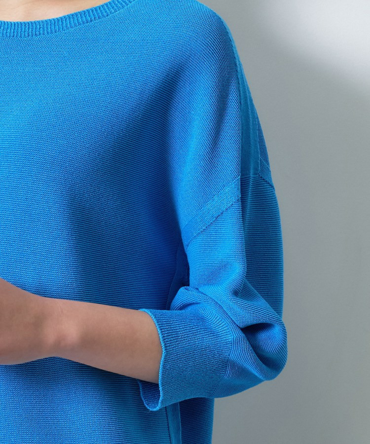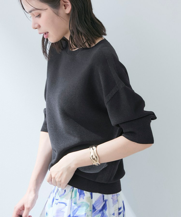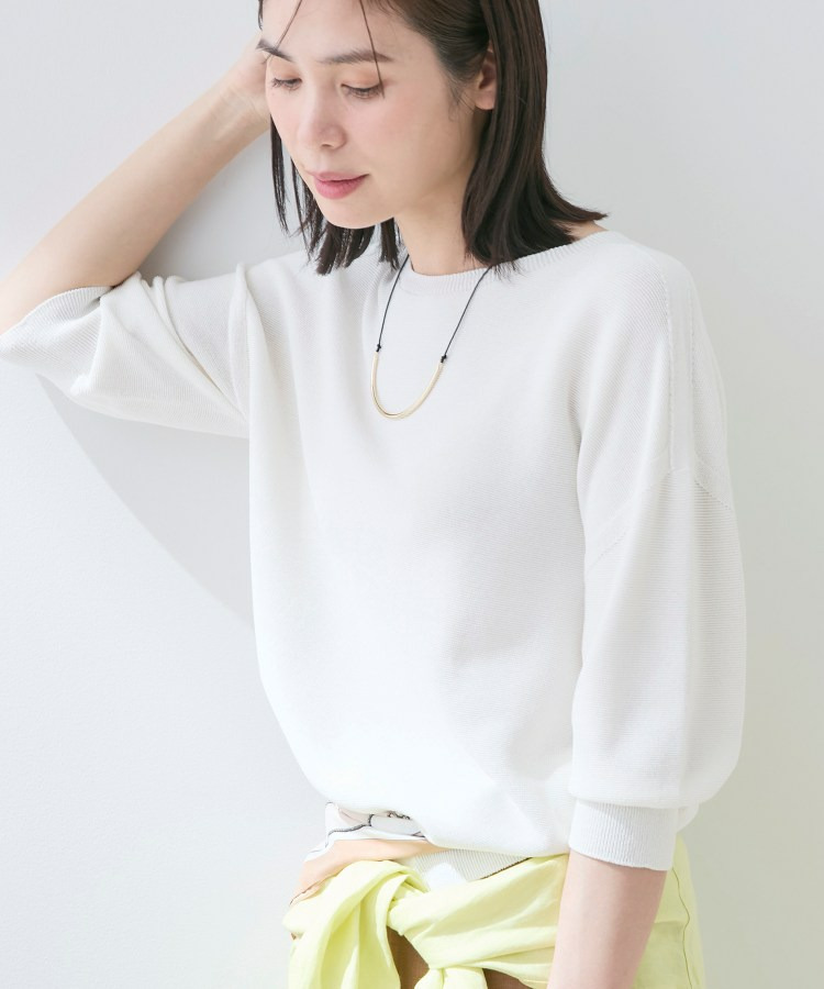 程よく抜け感のあるボートネックと、腕まわりをすっきり見せる6分袖のバランスが、上品で軽やかな印象を演出。
