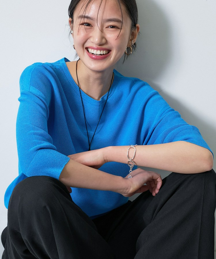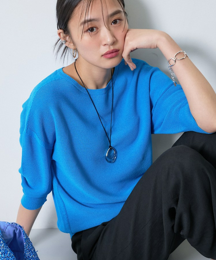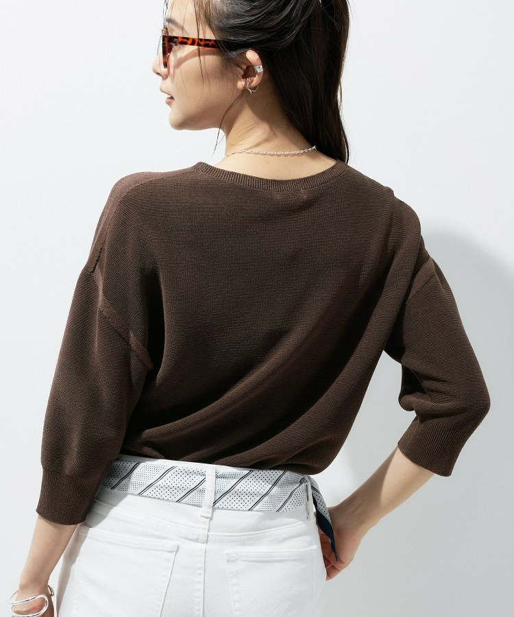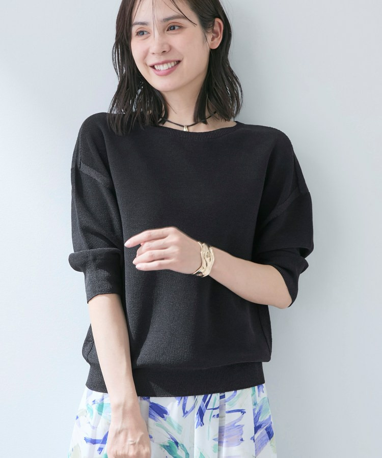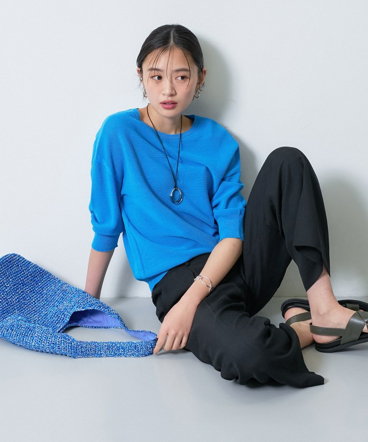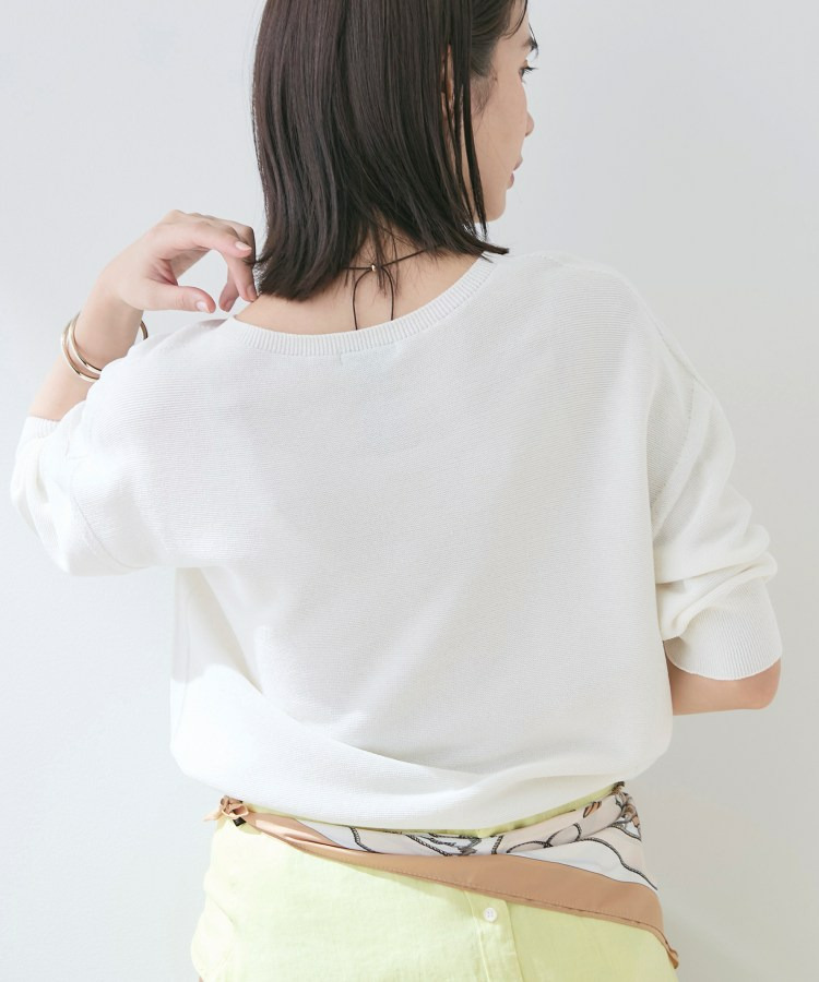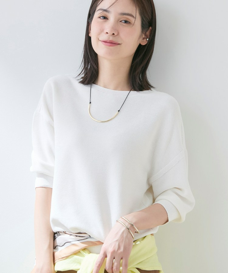 和紙をブレンドした糸を使用し、さらっとしたドライタッチの風合いが特徴のニット。