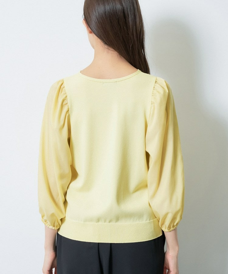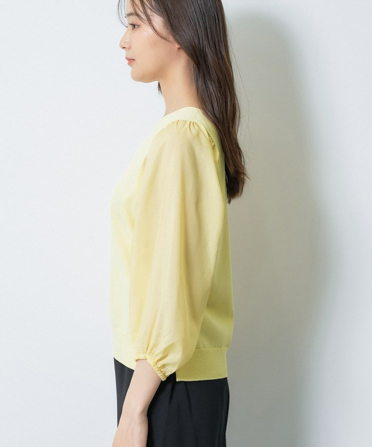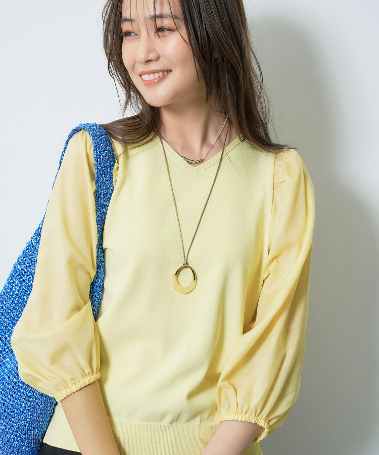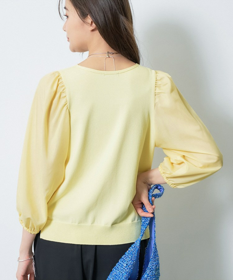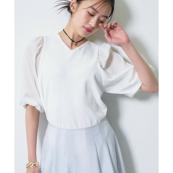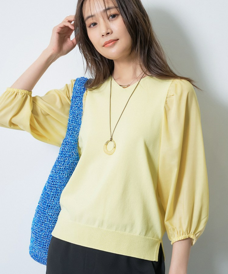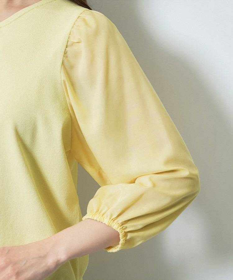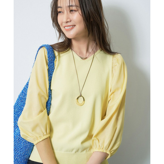 袖には薄手のローン素材を使用し、異素材のコントラストが楽しめるデザインに。