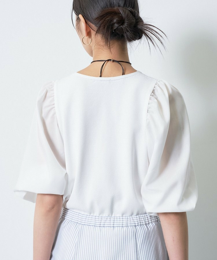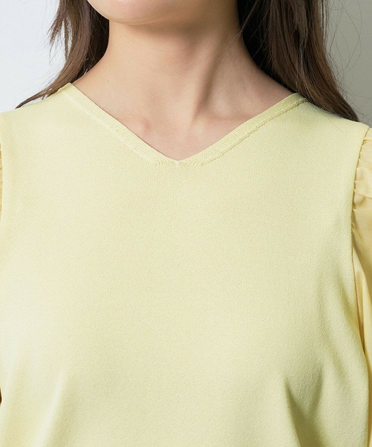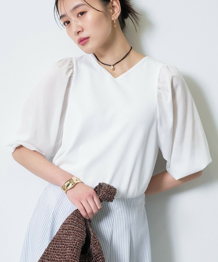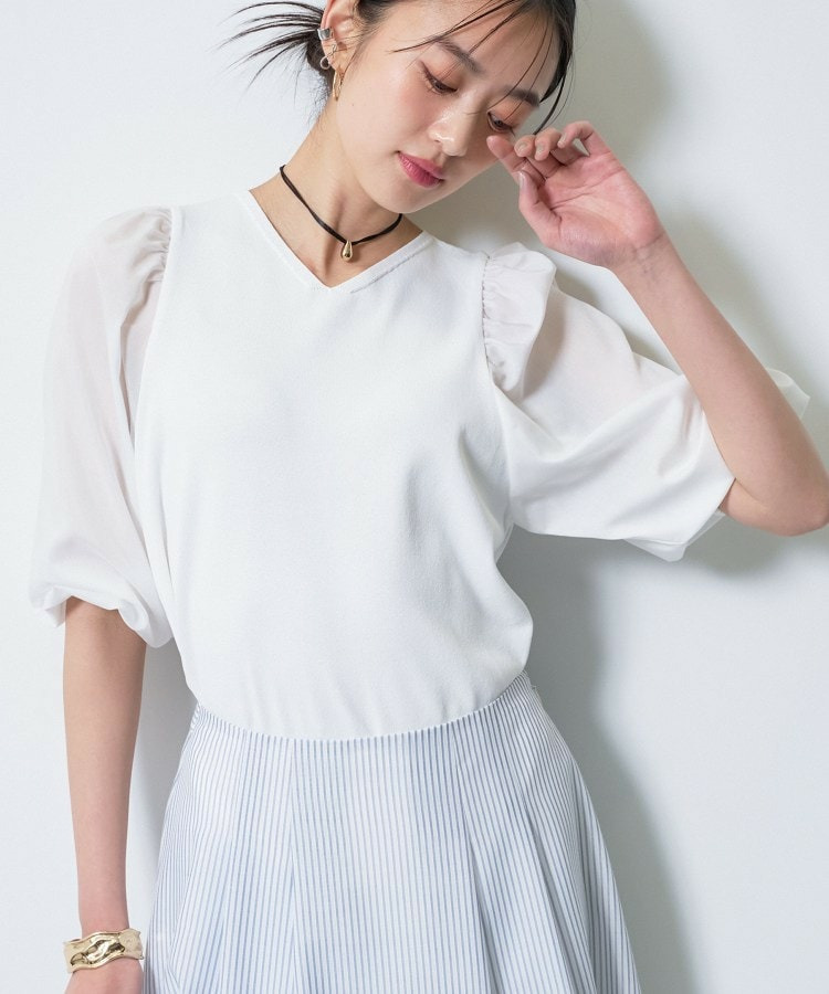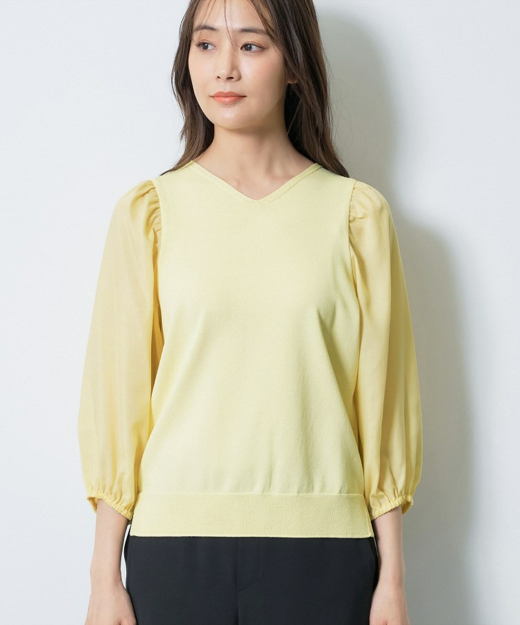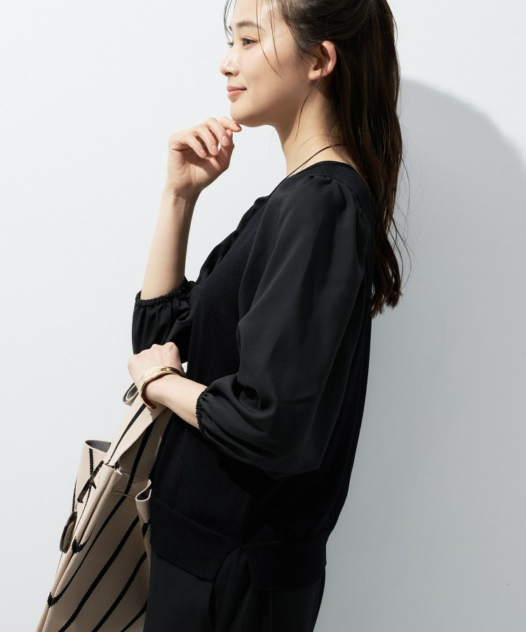 袖には薄手のローン素材を使用し、異素材のコントラストが楽しめるデザインに。