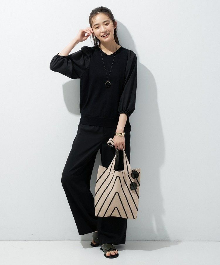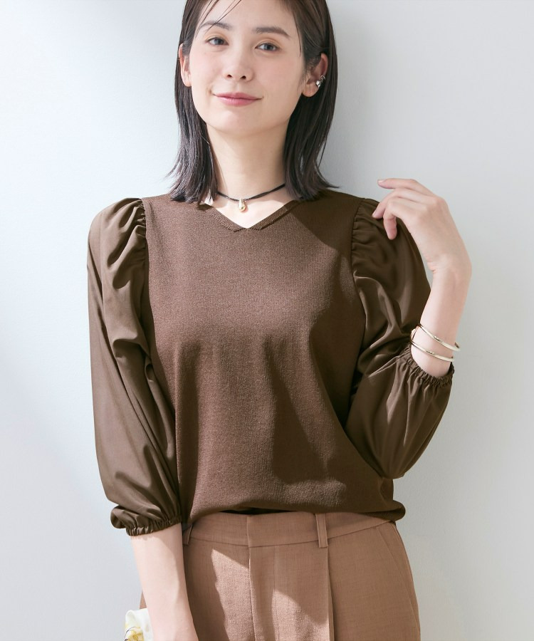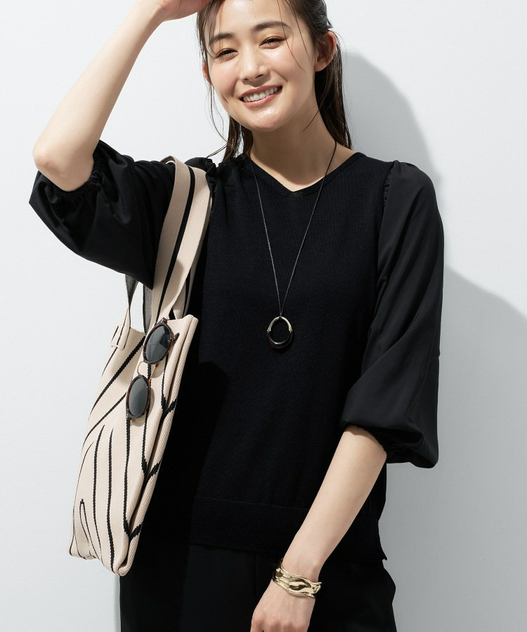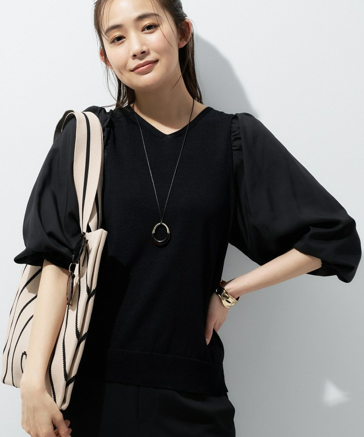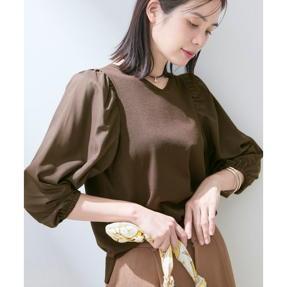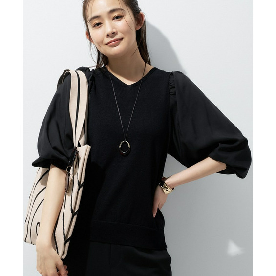 異素材の袖がアクセントになり、シンプルなコーディネートでもさりげない華やかさをプラスしてくれます。