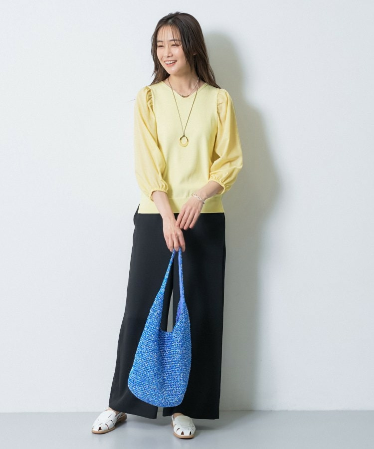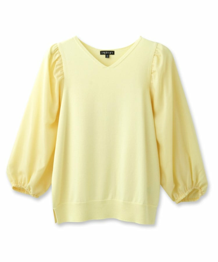 さらっとした肌触りの合繊素材を使用した、軽やかな着心地のニットトップス。