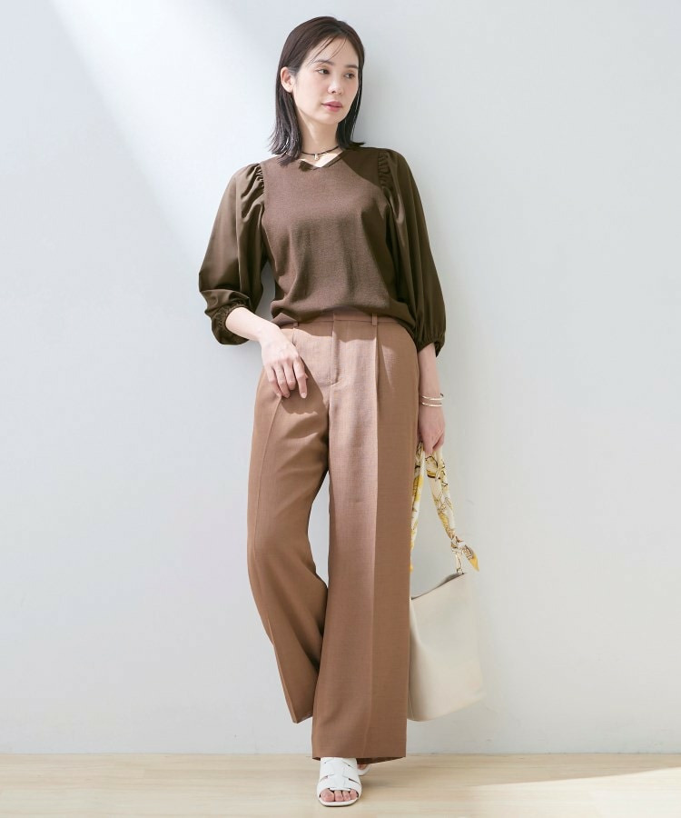 パンツスタイルには、ワイドパンツを合わせてリラックス感のある着こなしがおすすめ。
