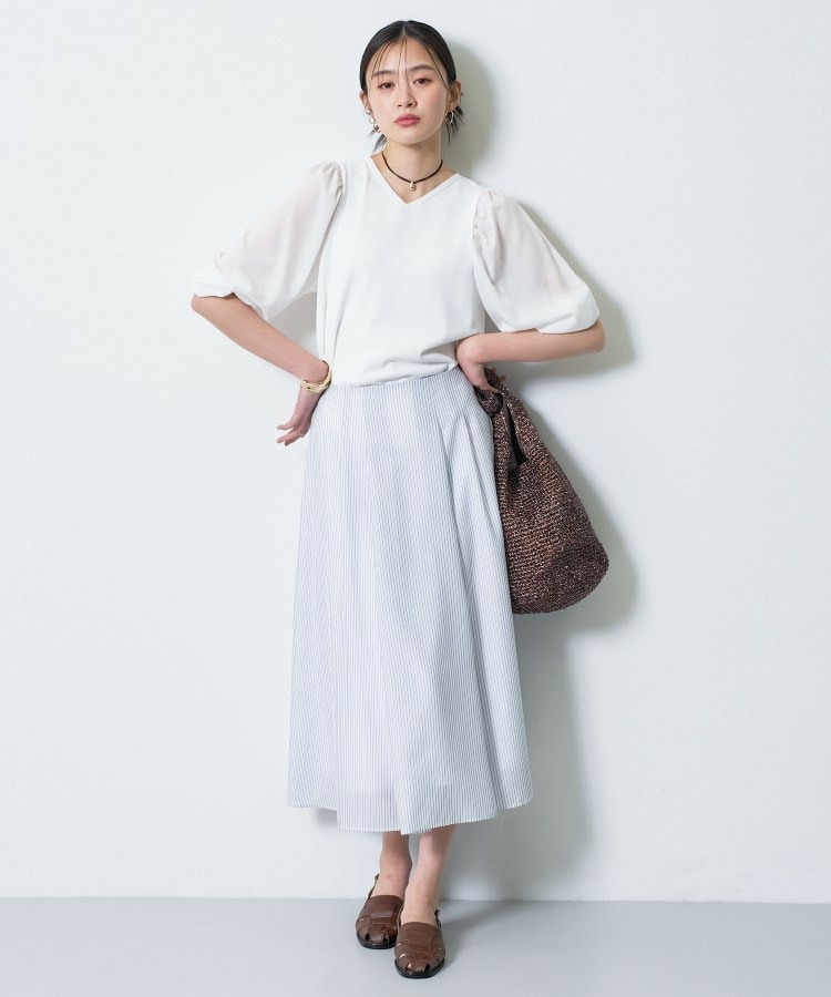 スカートと合わせれば、立体的な袖のシルエットが引き立つ女性らしいスタイルに。