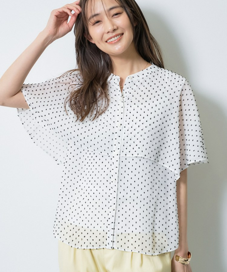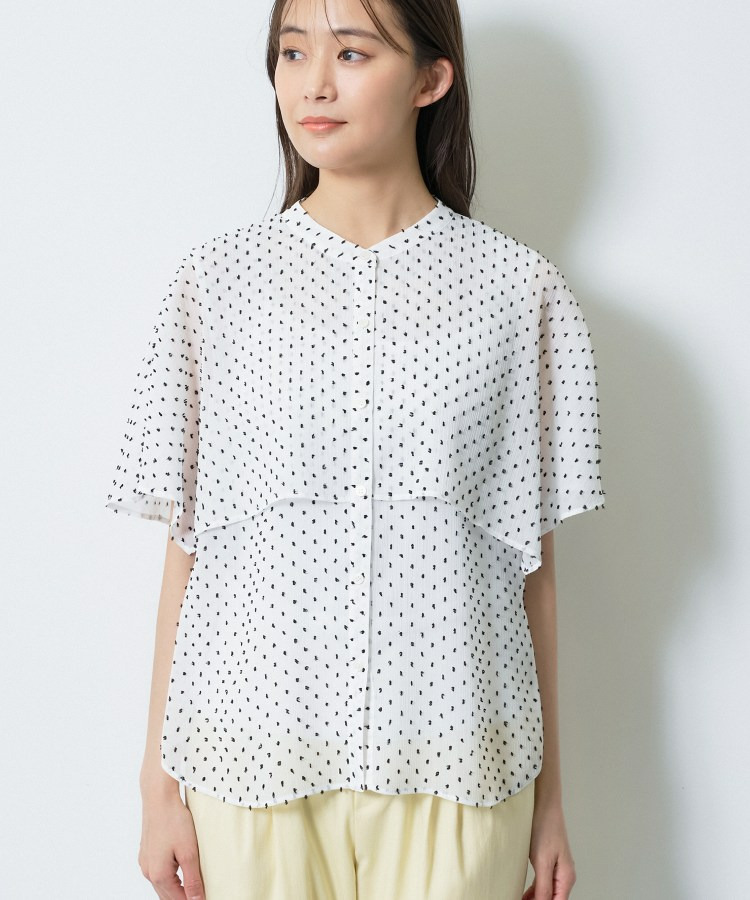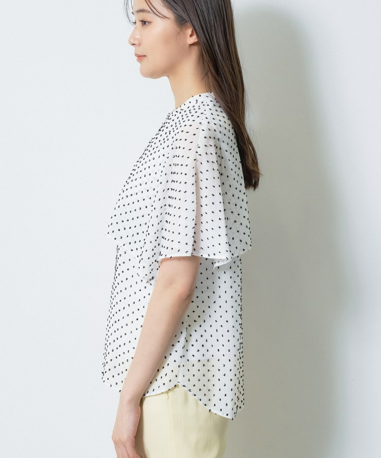 【洗える/ドットモチーフ】ケープスリーブブラウス