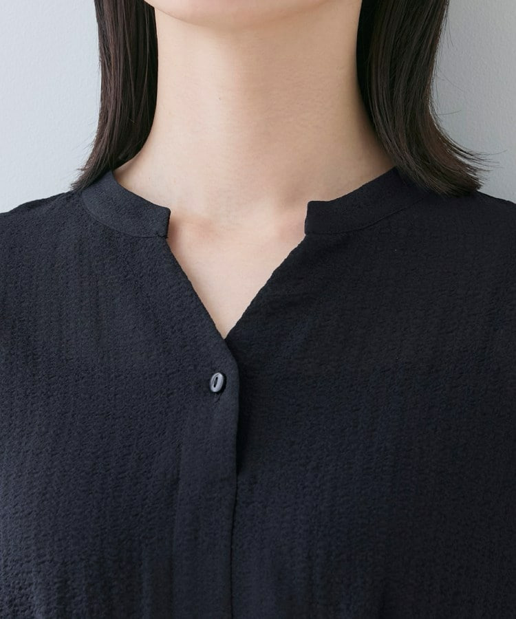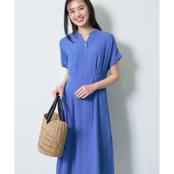 抜け感のあるバンドカラーと半袖デザインで、一枚でサマになる華やかさです。