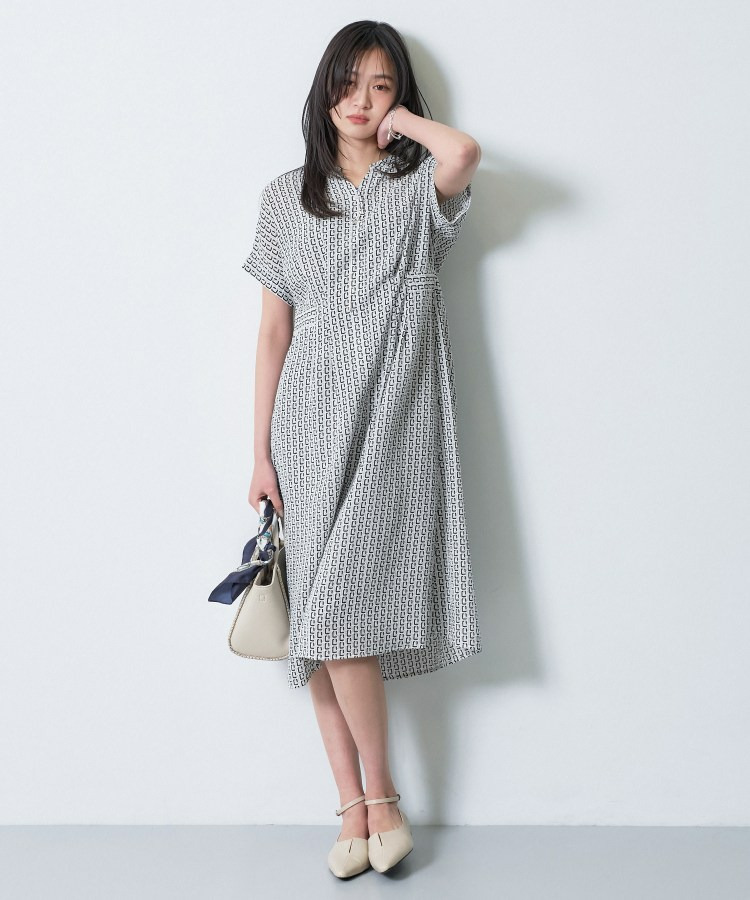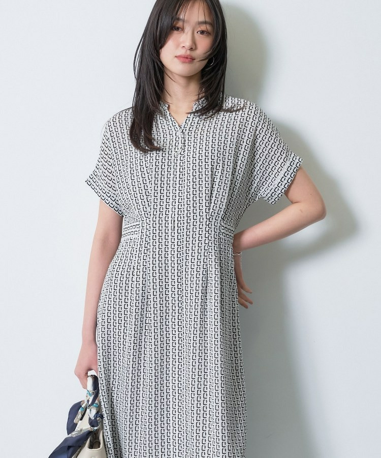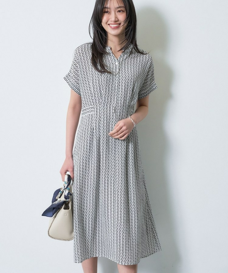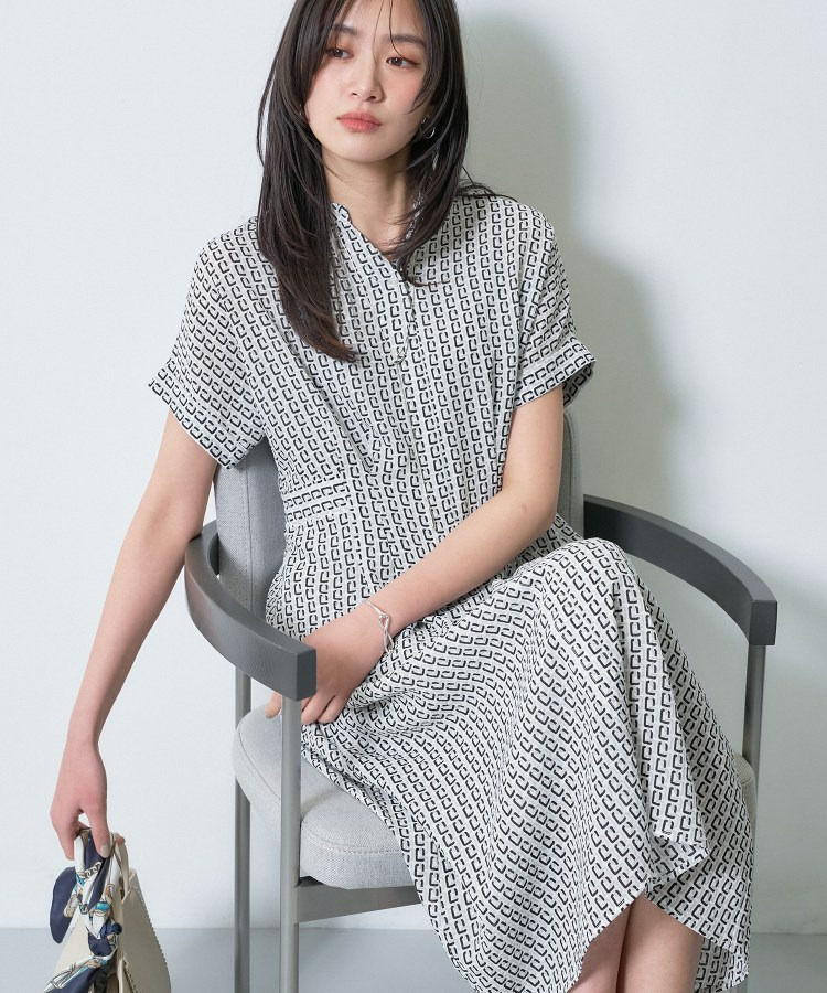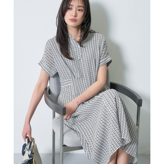 オリジナルのチェーンモチーフプリントとシャーリングの表情感が目を引くデザインワンピース。