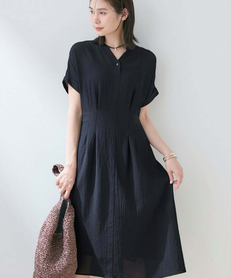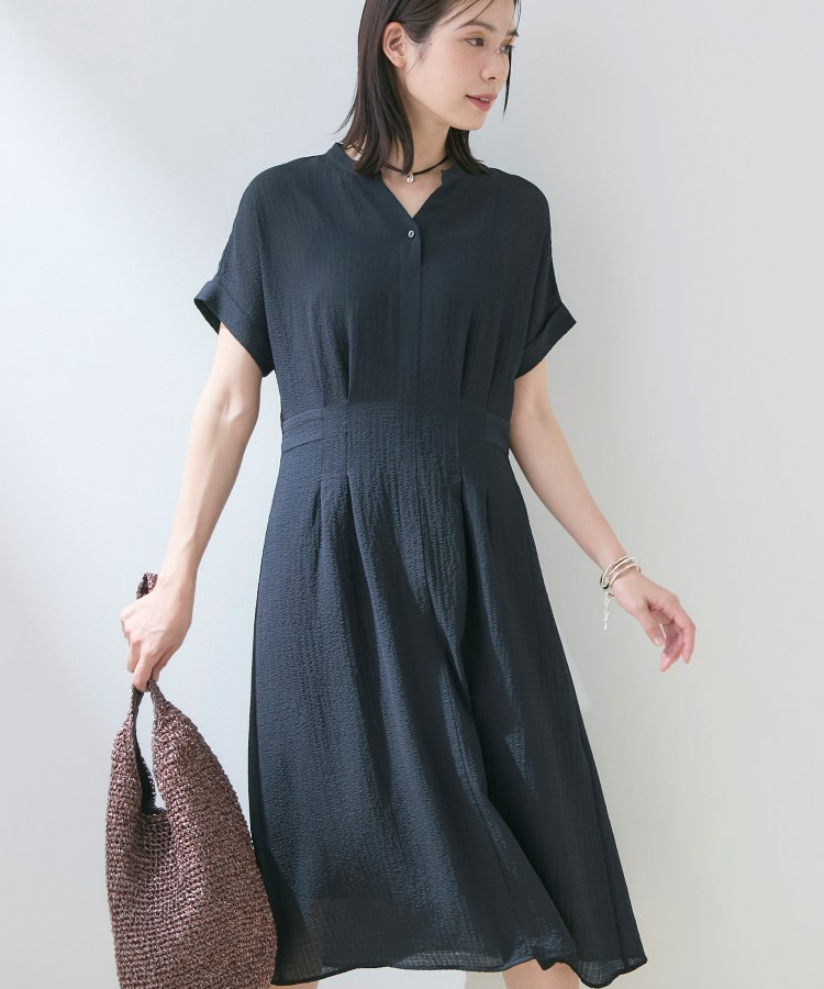 • 【洗える/羽織りとしても活躍】無地&チェーン柄 シャーリングサッカーワンピース24