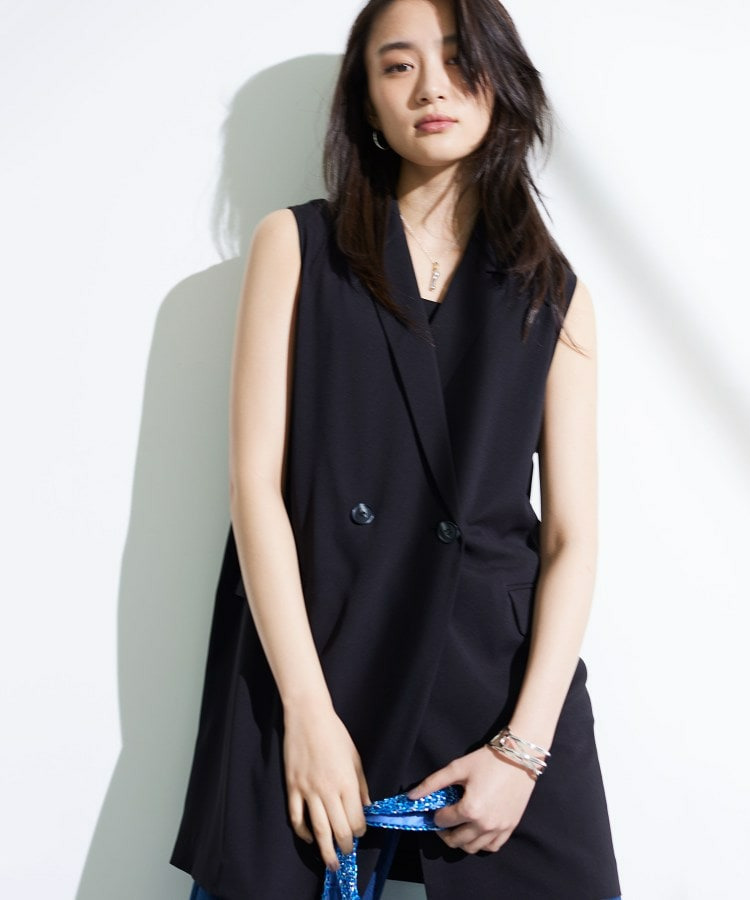 シンプルなインナーにジレを羽織るだけで、たちまち旬なコーディネートが完成します。